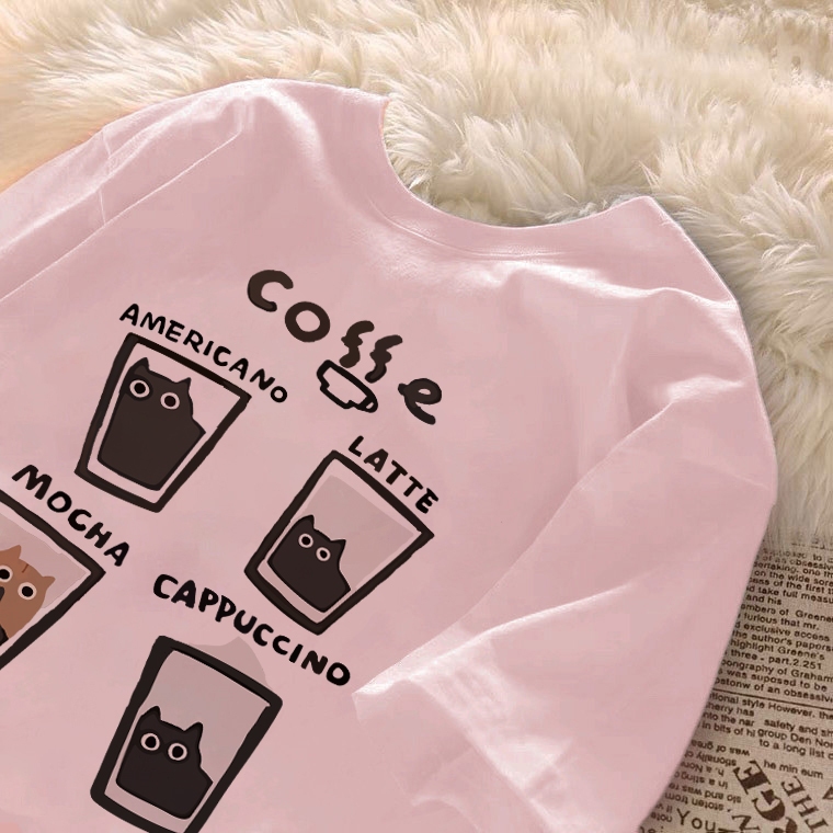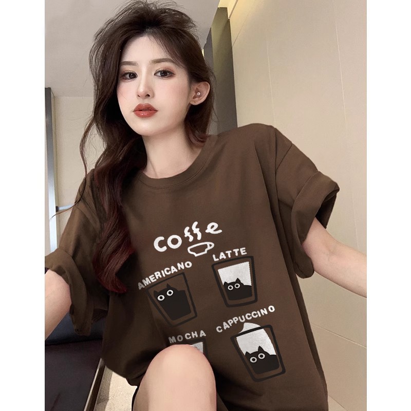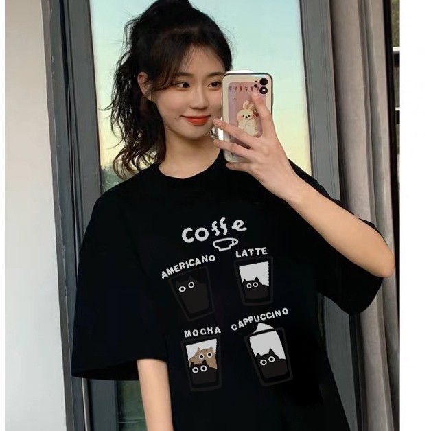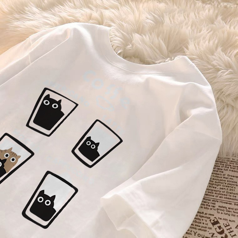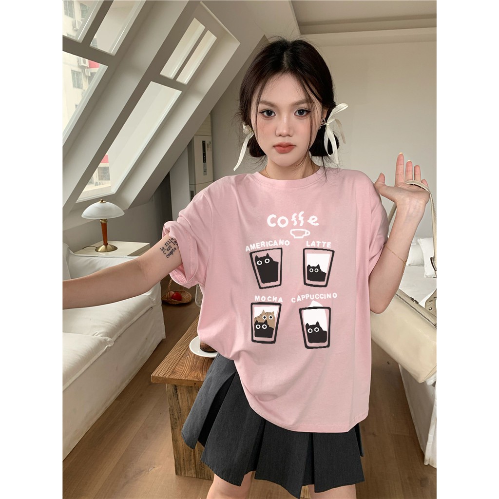 kumikumi Korean retro Cup Cat Print oversized casual T-shirt for women t shirt perempuan