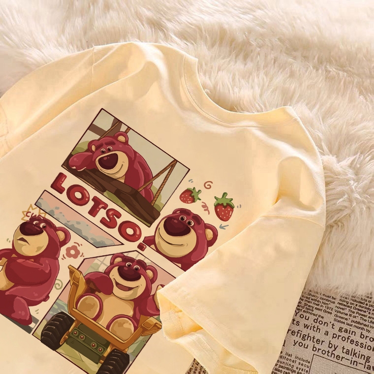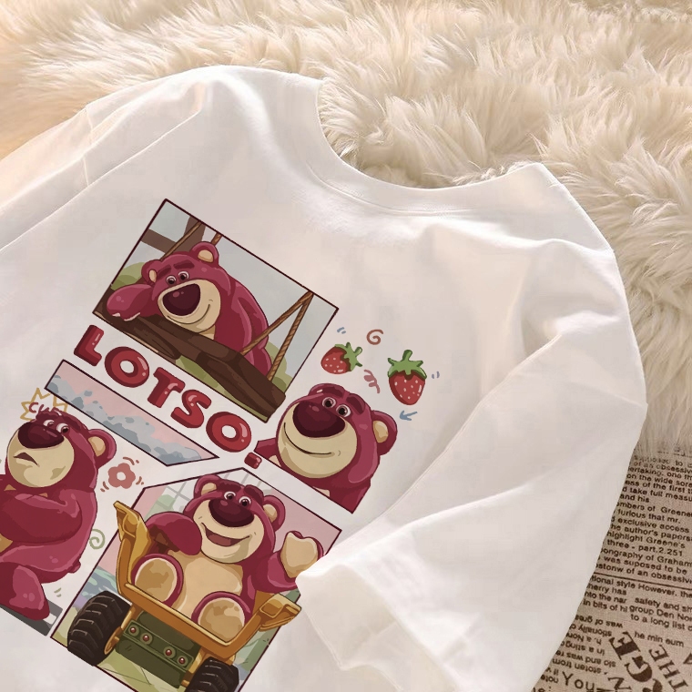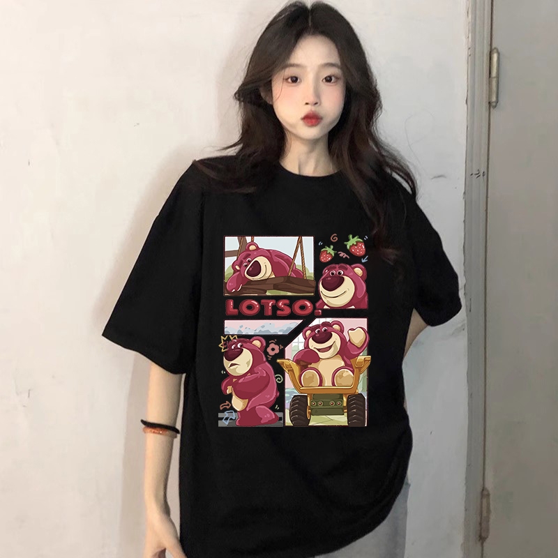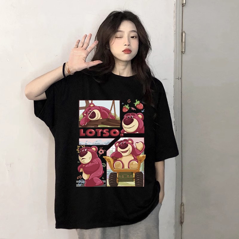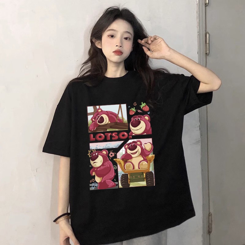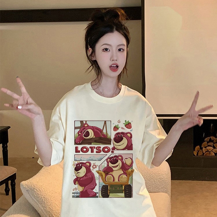 kumikumi Korean retro Lotso Strawberry Bear Print oversized baggy T-shirt for women