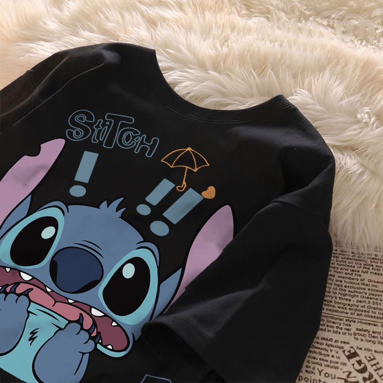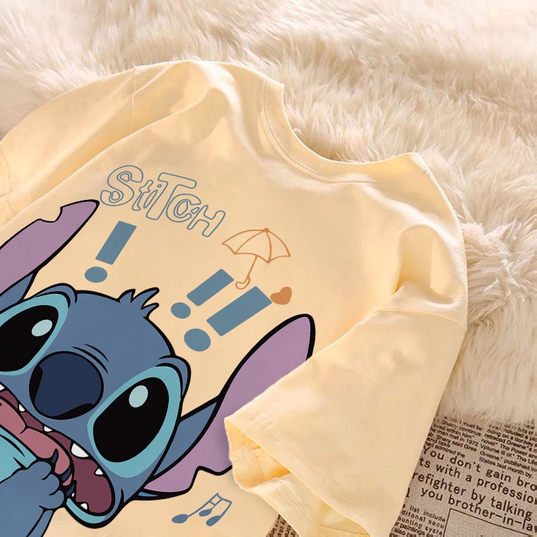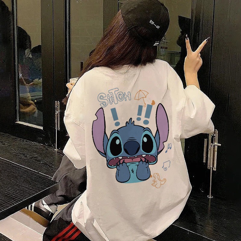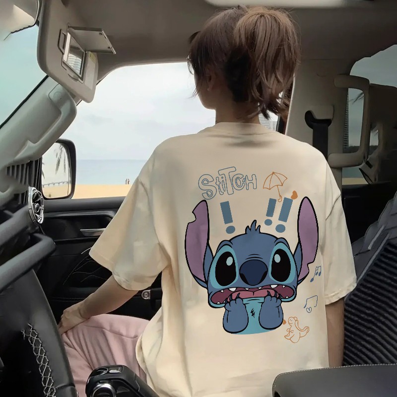 kumikumi Korean retro Surprised Stitch Print oversized casual T-shirt for women