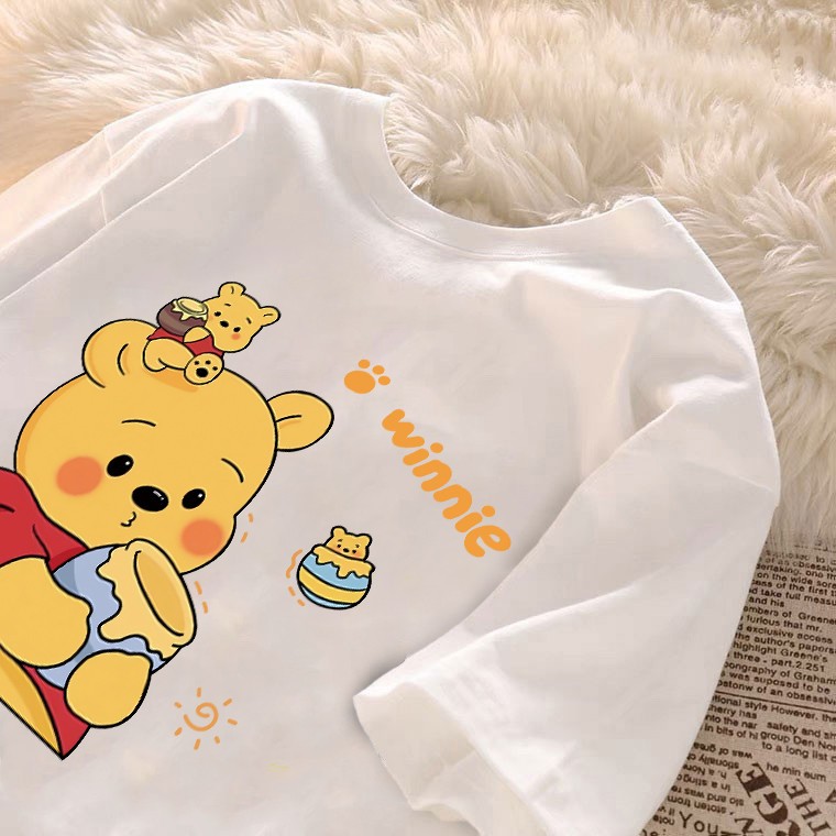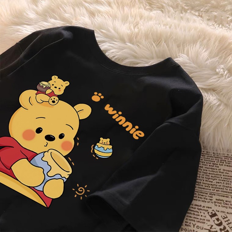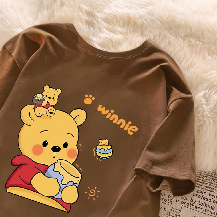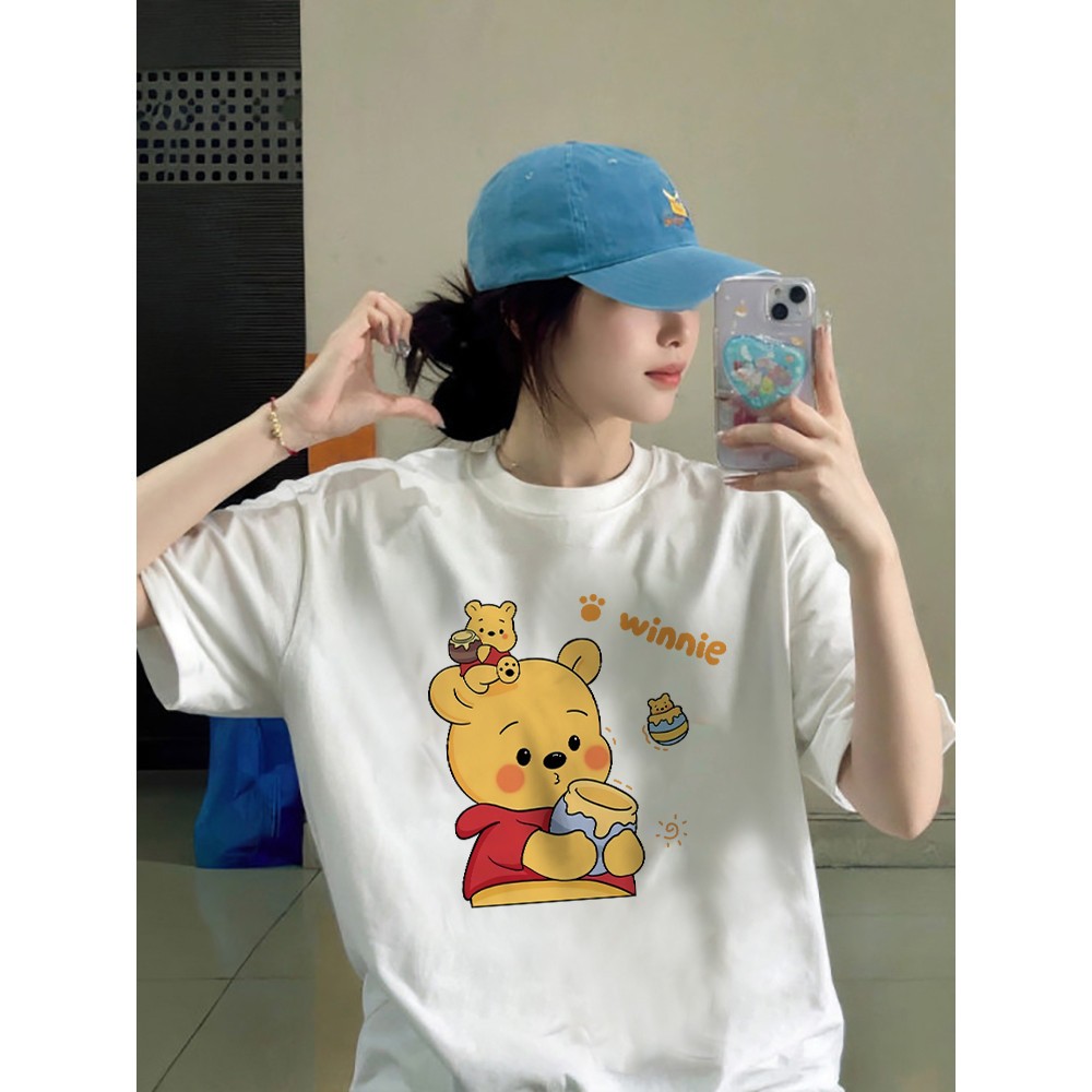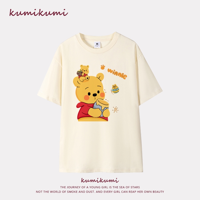 kumikumi Korean retro Winnie the Pooh Print oversized casual T-shirt for women