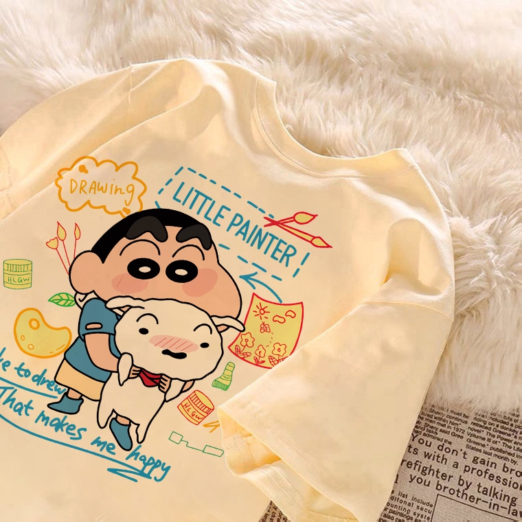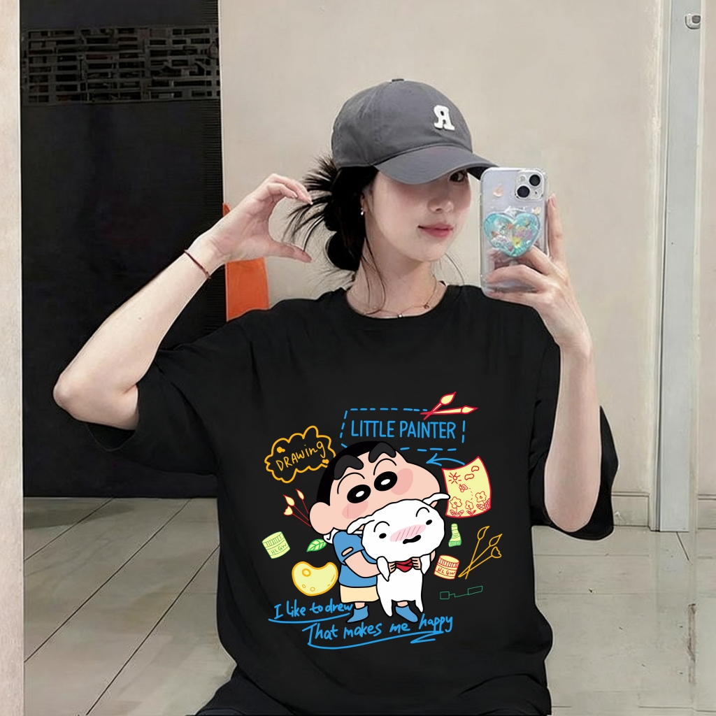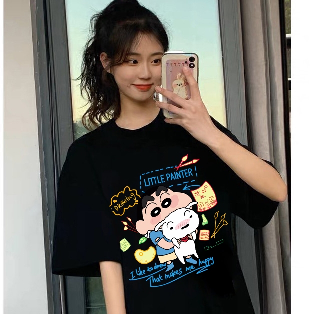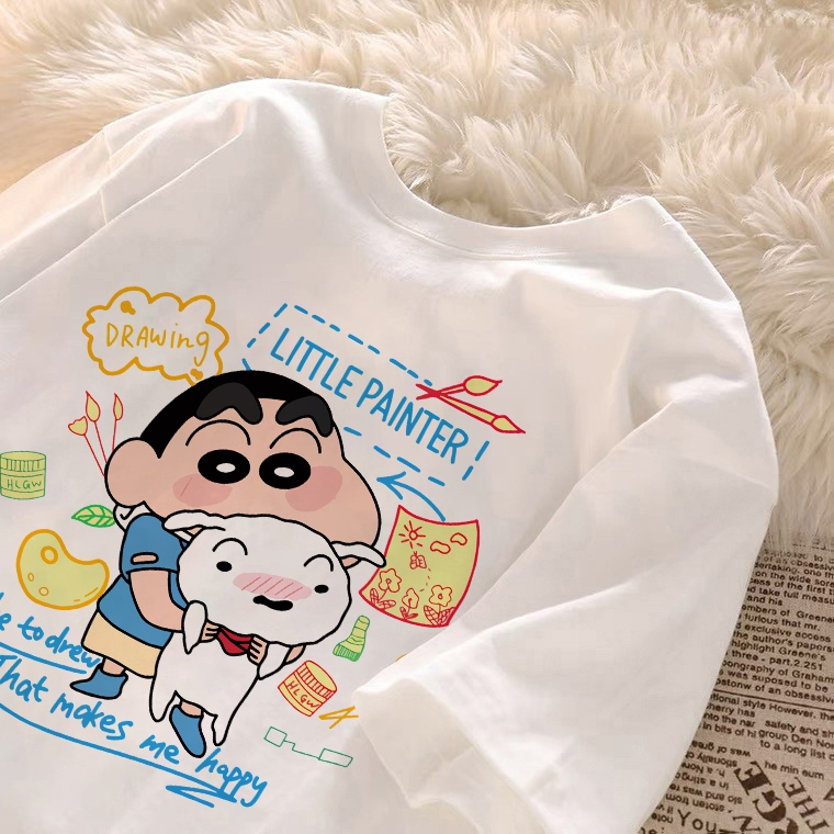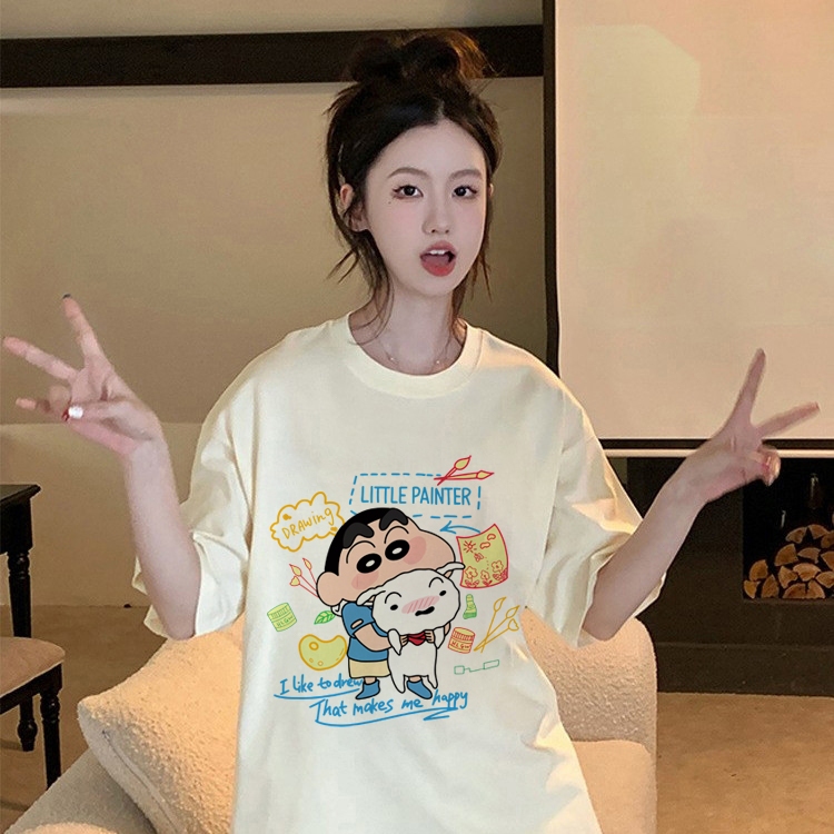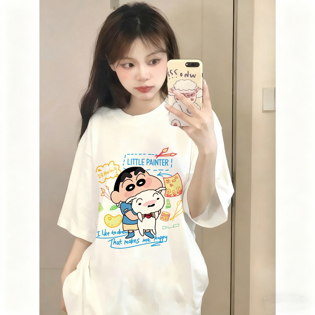 kumikumi Korean trend Crayon Shin-chan print oversized white T-shirt for women