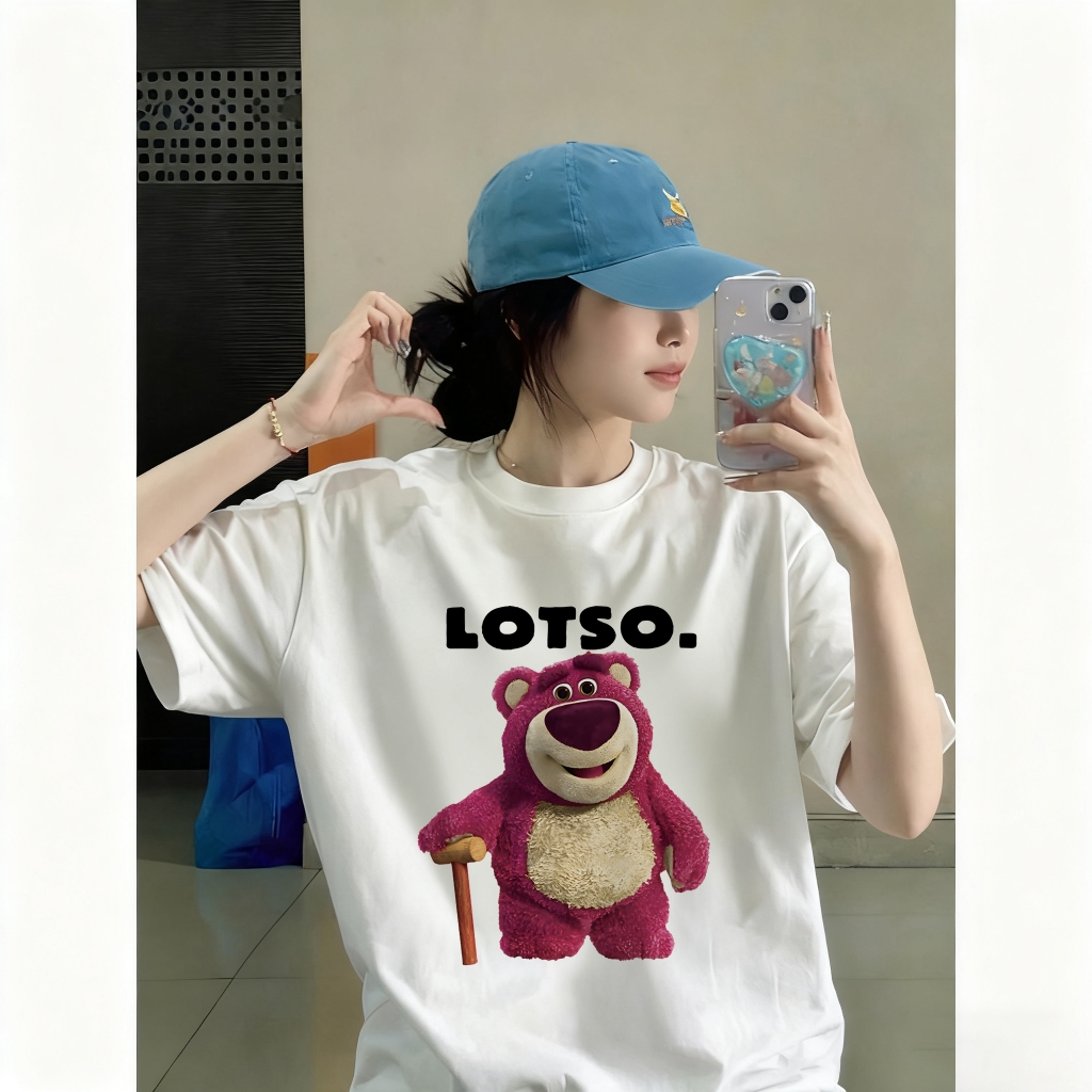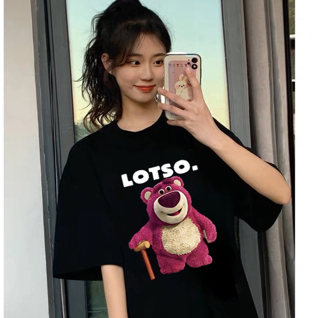 kumikumi Lotso print oversized T-shirt for women Korean aesthetic Casual and loose t shirt