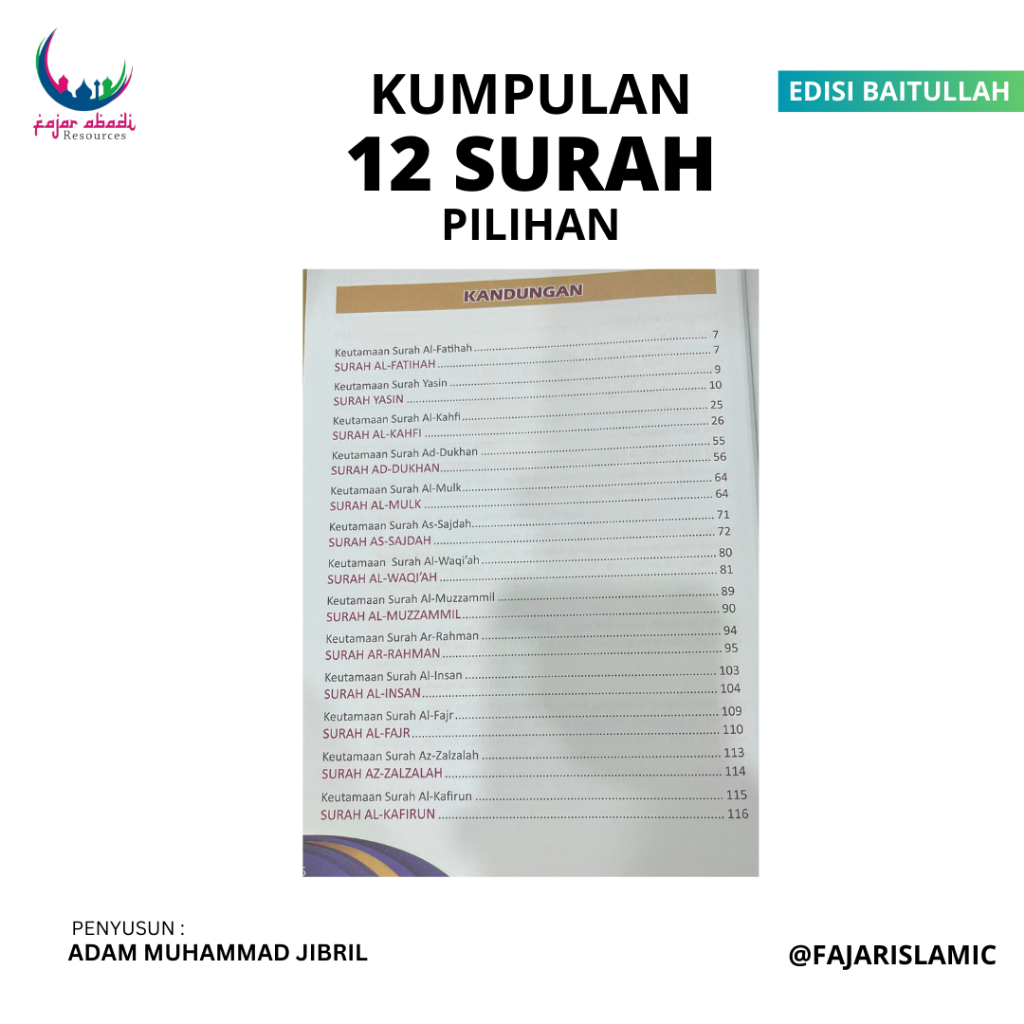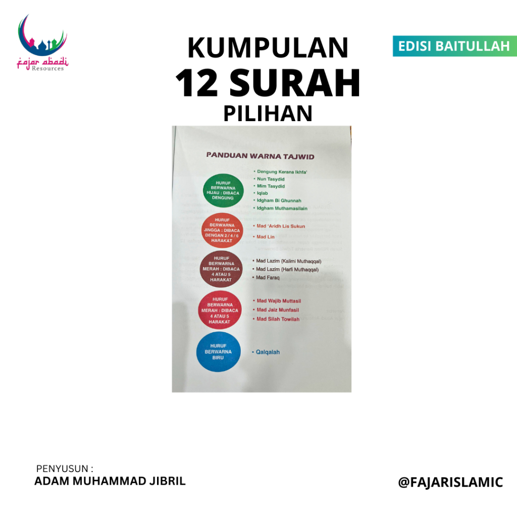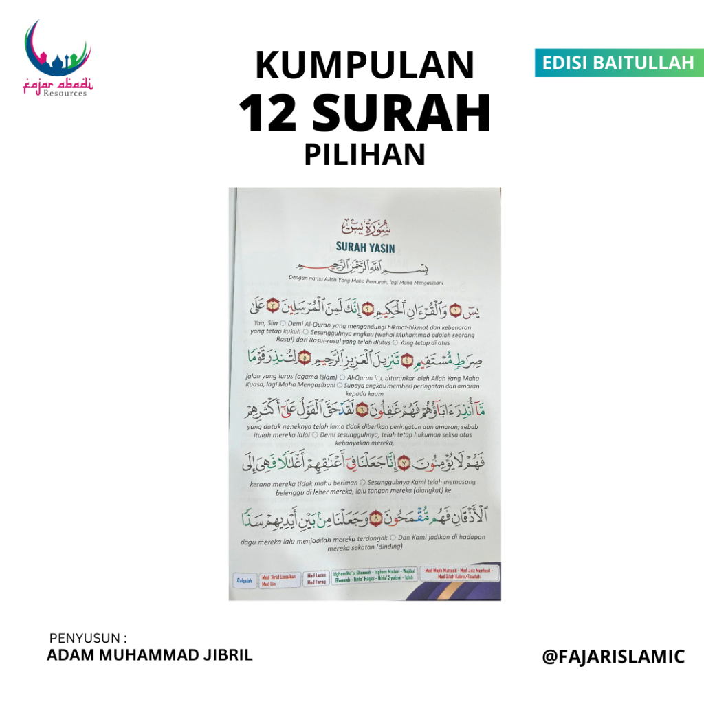KUMPULAN 12 SURAH PILIHAN BERSERTA TAJWID BERWARNA, HALAMAN BERWARNA DAN TERJEMAHAN (EDISI BAITULLAH)