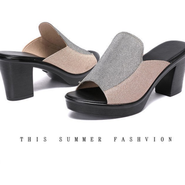 L&F Women thick Heels sandals perempuan kasut (plus size 35-42)