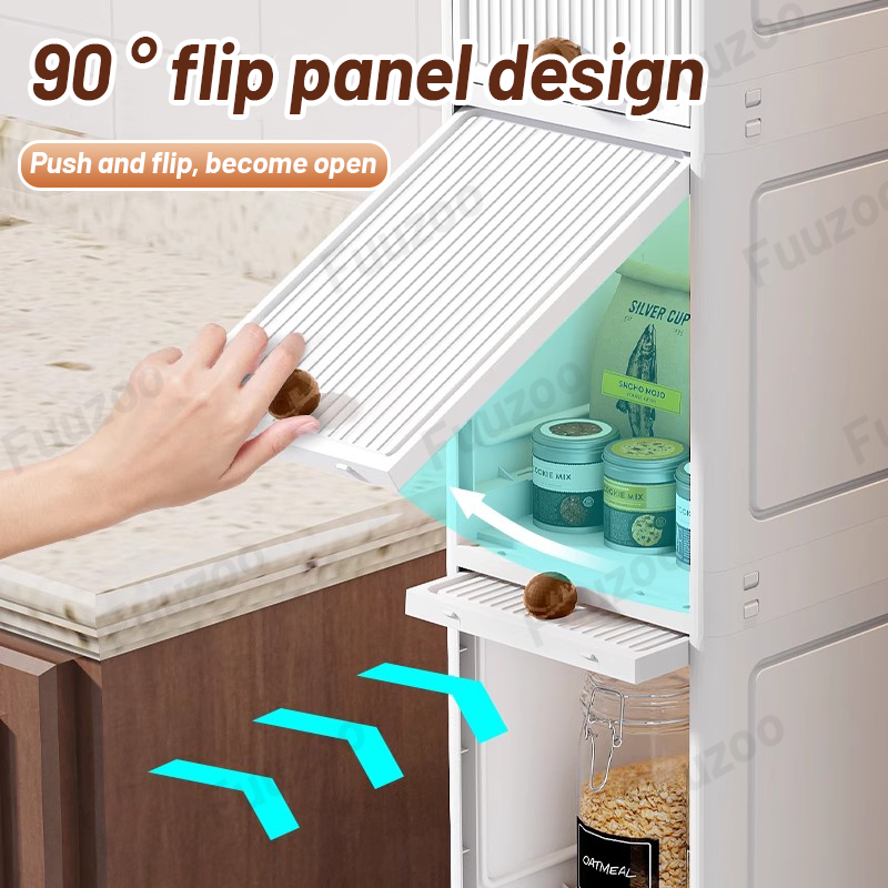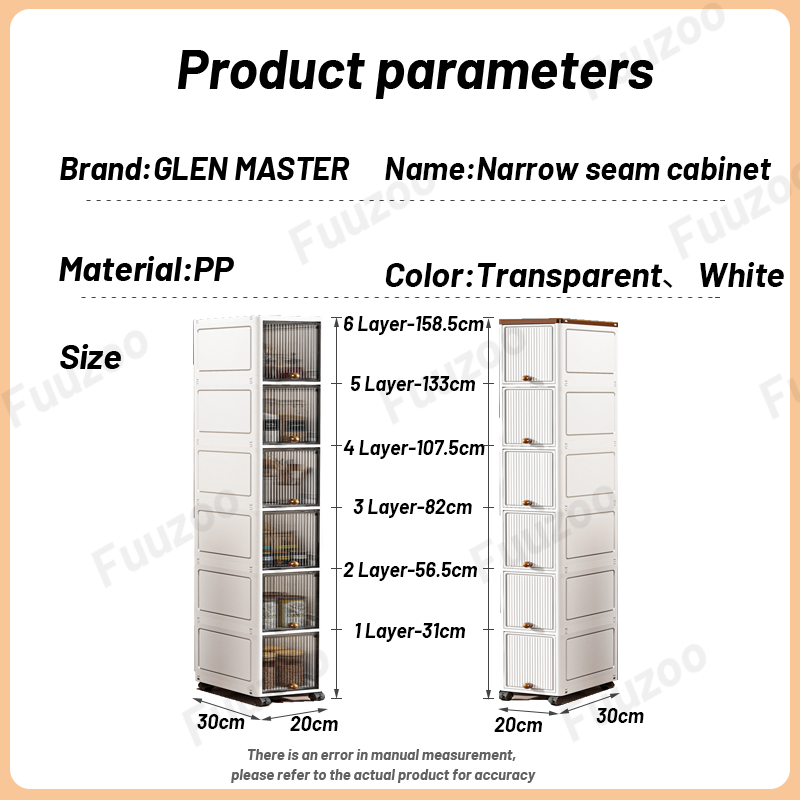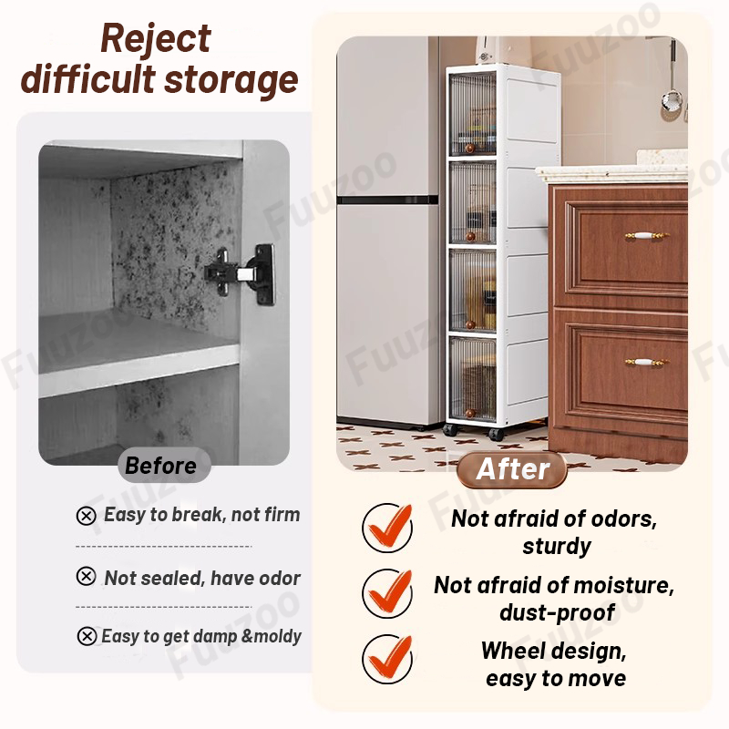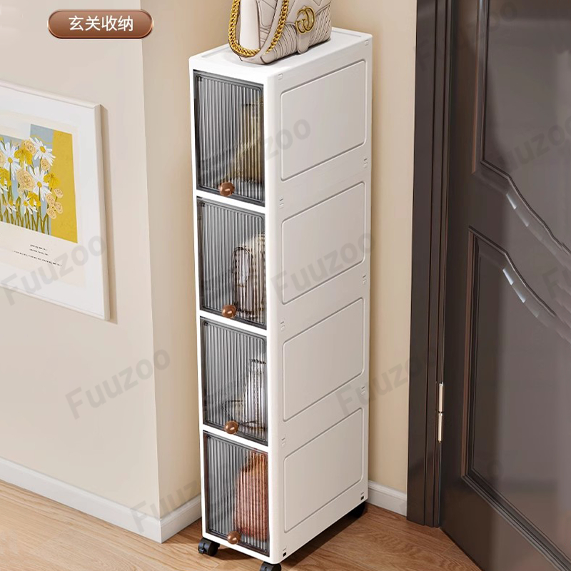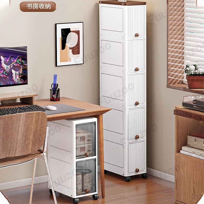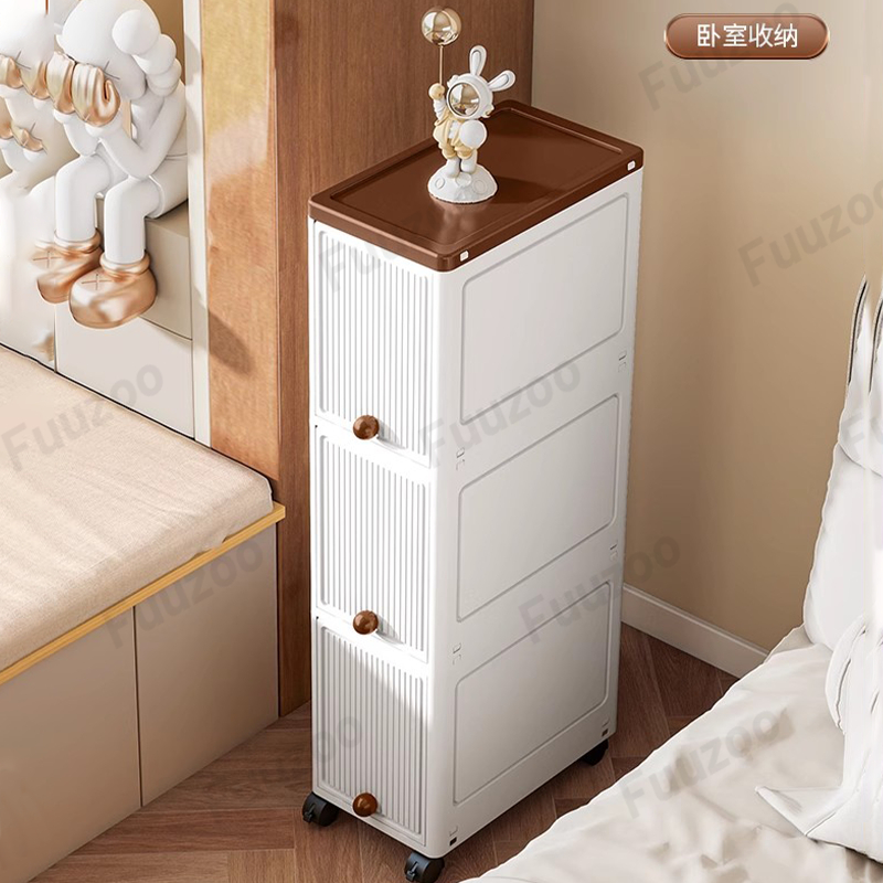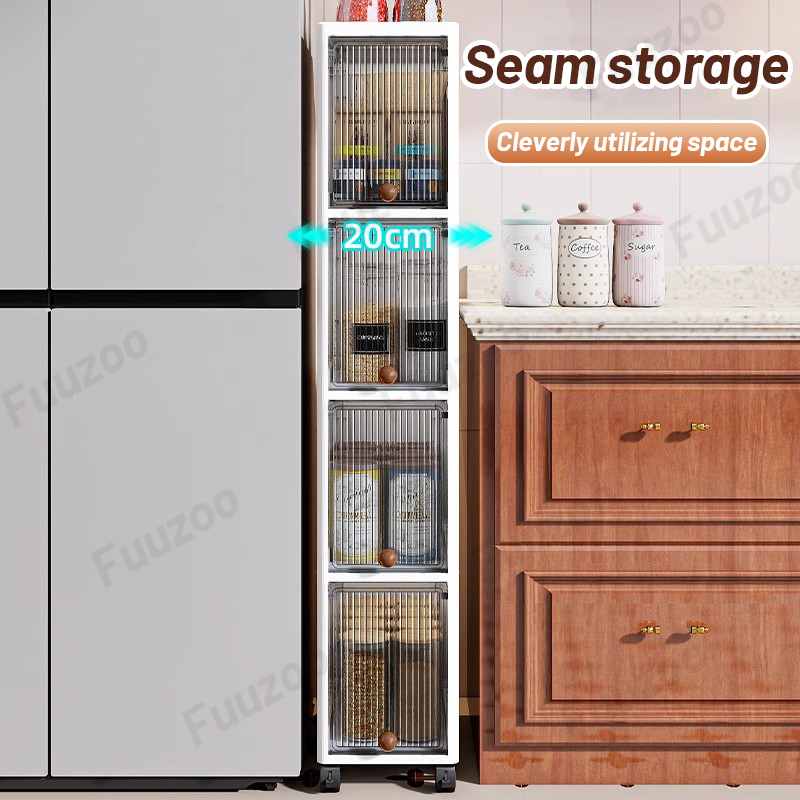 L20cm Narrow Storage Cabinet with door Slim Plastic Kitchen Cabinet Moving Rack Bathroom Cabinet Multi-Layer Compartment Storage Drawer Gap Plastic Cabinet