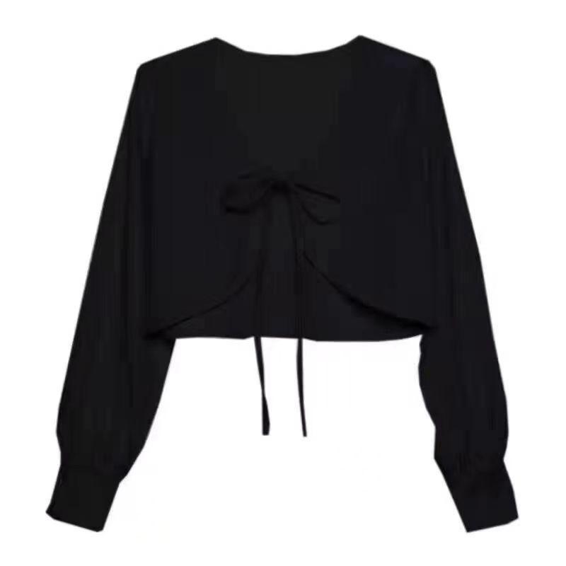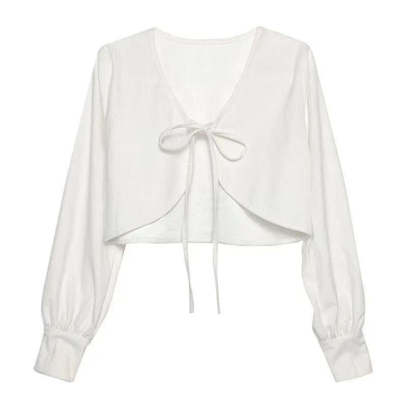 Lady Office Crop Jackets, Thin Elegant Lace-up Korean Style Fashion Shawl, Women Casual Long-sleeve Sunscreen Cardigan