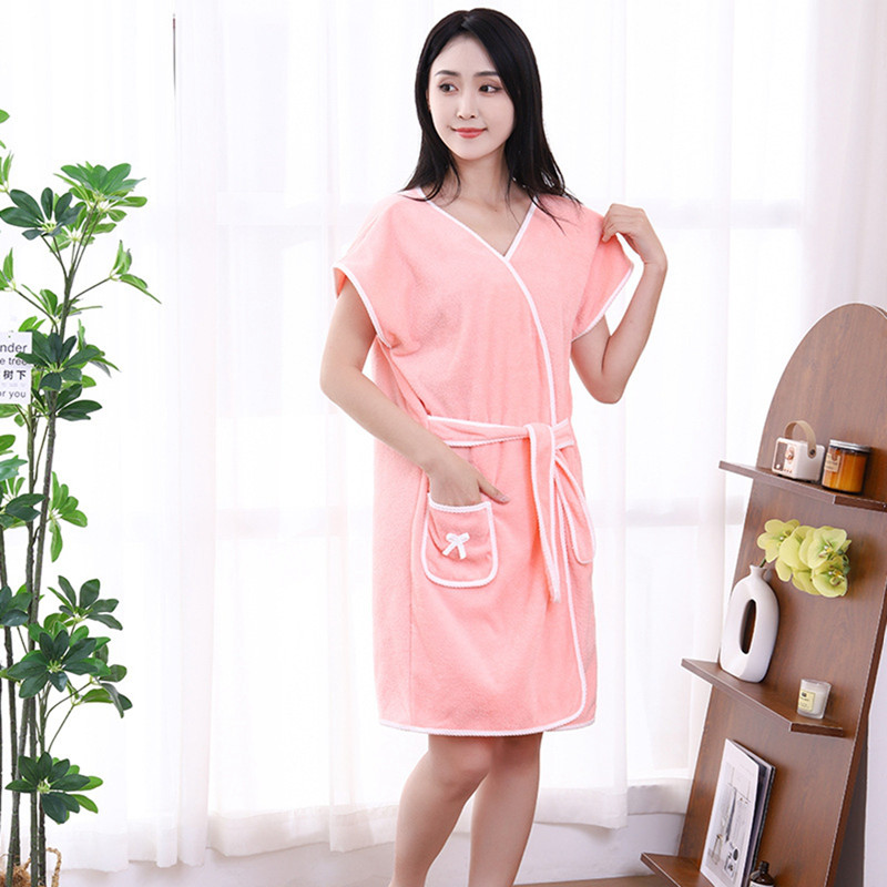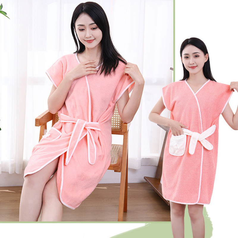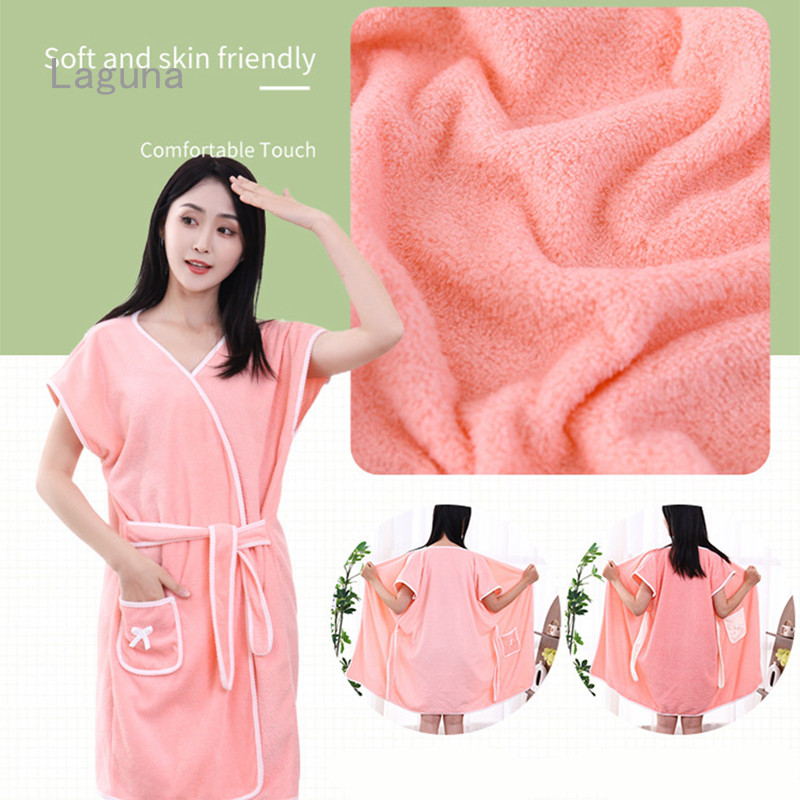 【Laguna】 Soft Coral Velvet Tied Bathrobe Women's Super Absorbent Quick Dry Spa Bathrobe Comfortable Homewear Beachwear Bath Towel Bath Skirt/Jubah Mandi Berikat Baldu Karang 浴袍