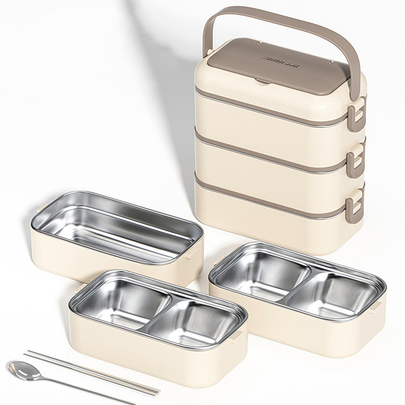 [Laguna] Square Sealed 304 Stainless Steel Insulated Lunch Box Portable Lunch Box Compartment Stratified Bento With Multiple Layers And Compartments/Kotak Makan Tengah Hari Mudah Alih, Bento Berpering
