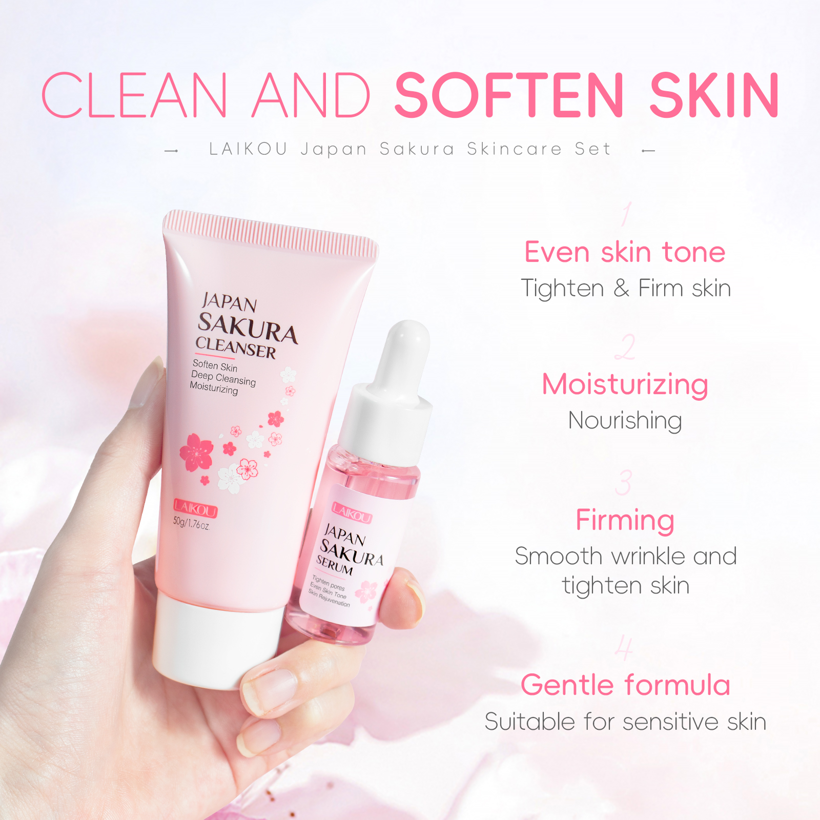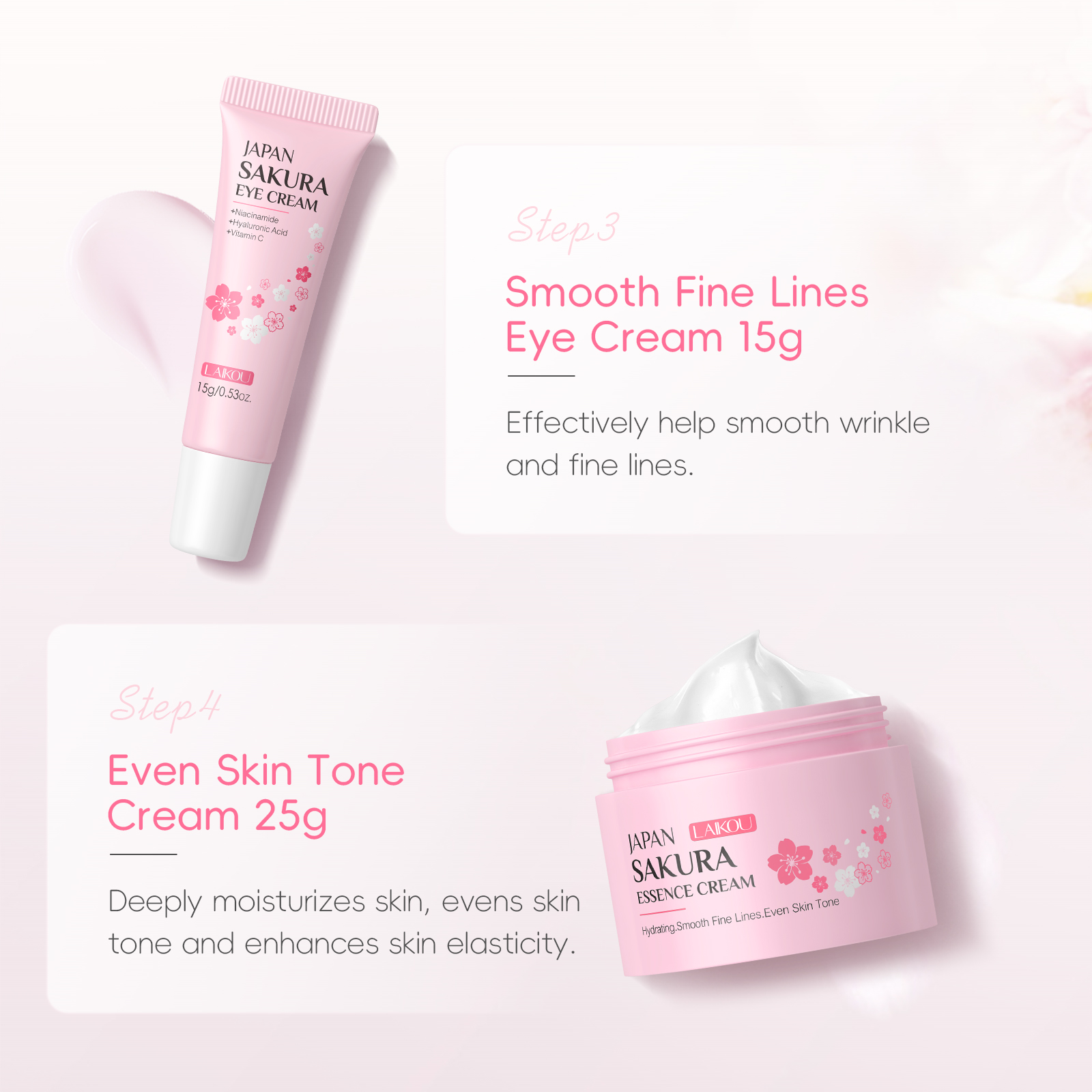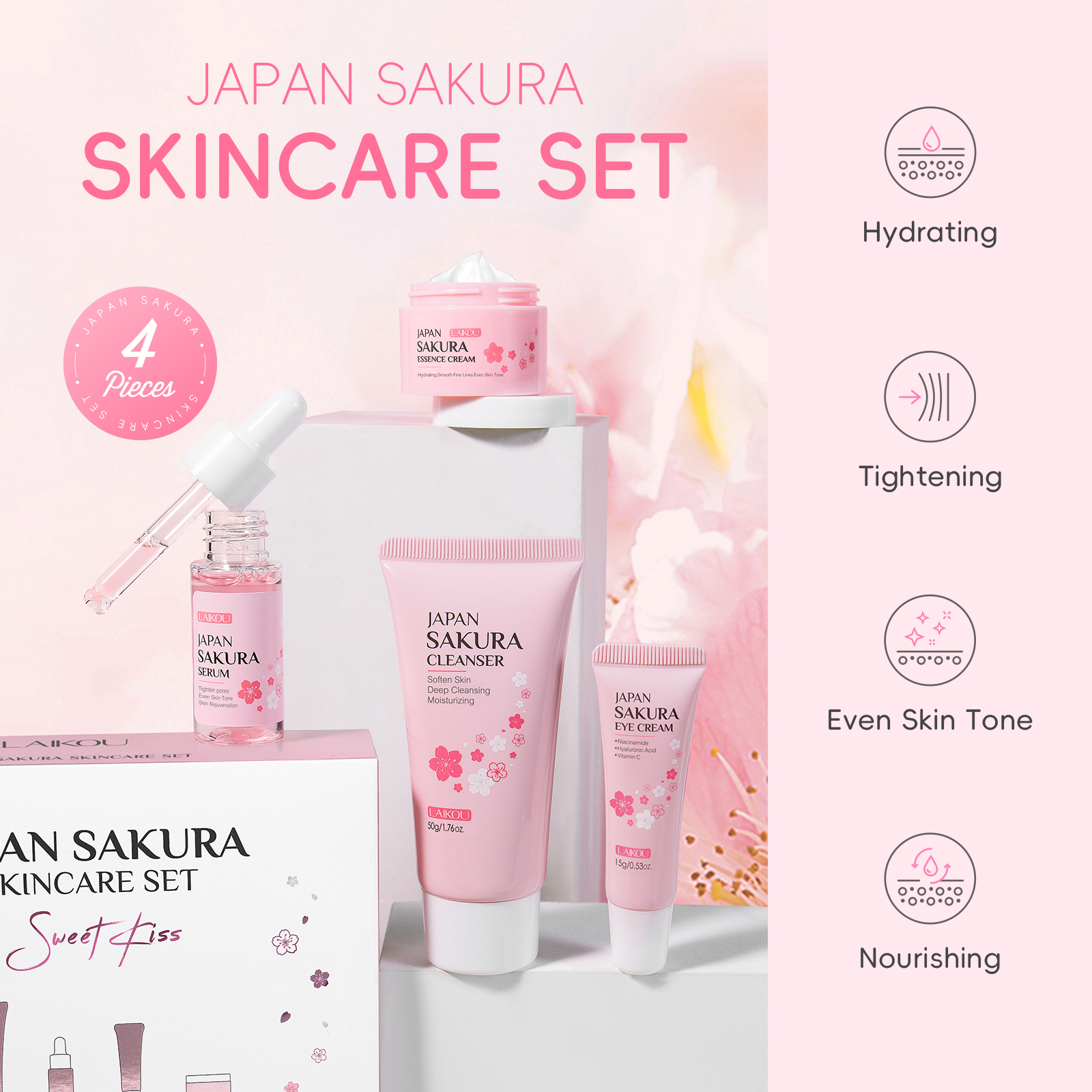 LAIKOU Sakura 4pcs/Set Skin Lighten Blemishes Moisturizer Fade Dark Circle Eye Cream