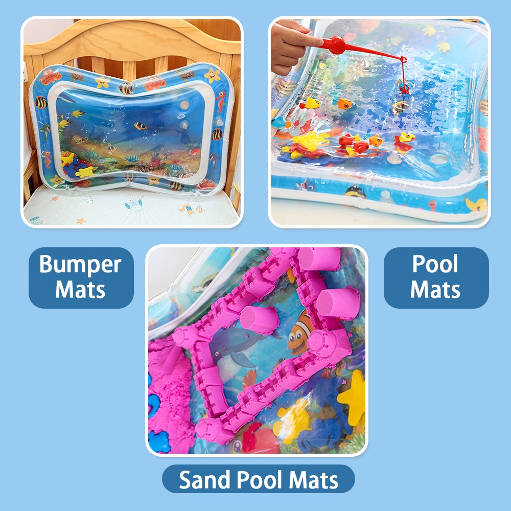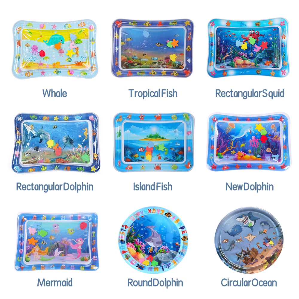 lakoe Baby Water Play Mat Newborn Inflatable Playmat Crawl Mat Cartoon Water Fish Whale Squid Fun Activity Playmats
