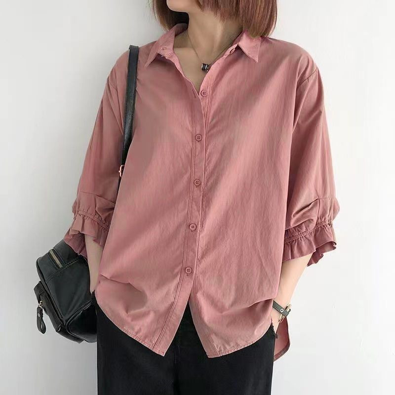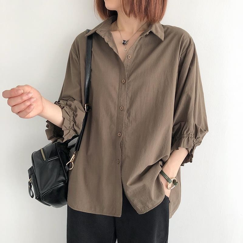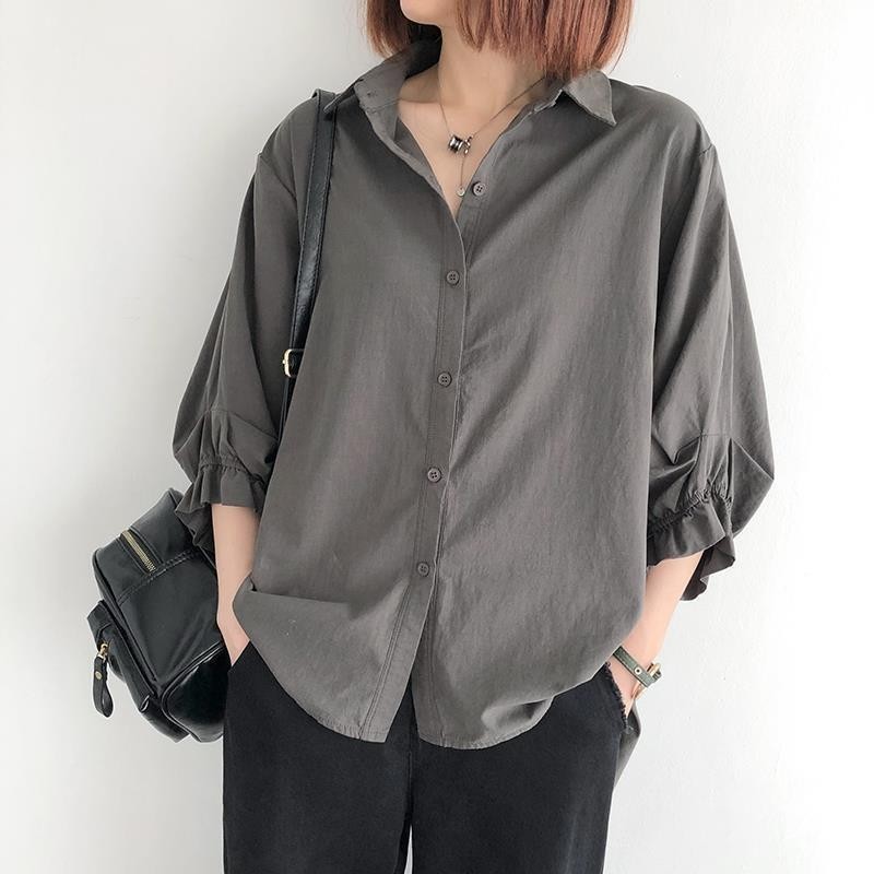 ?LanGao? [ready stock in Malaysia] Blouse Women Large Size Three-quarter Lantern Sleeve Blouse - Fashionable & Comfortable