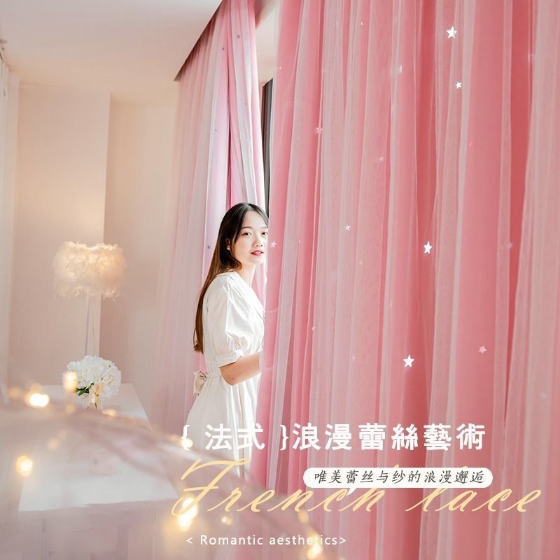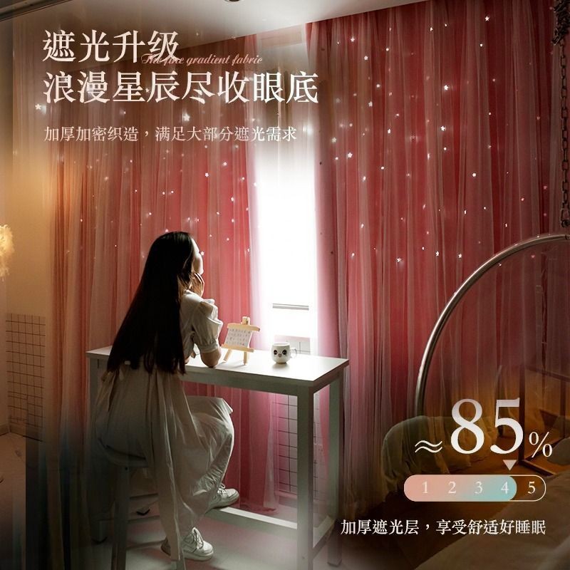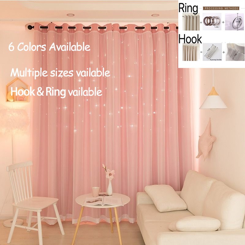 Langskur Bintang Berlubang 鏤空星星窗簾 Korean Princess Style Curtain Bedroom Blackout Pink Girl Girl Double Lace Curtain New langsir