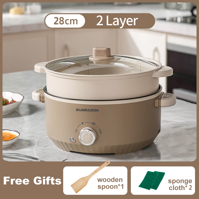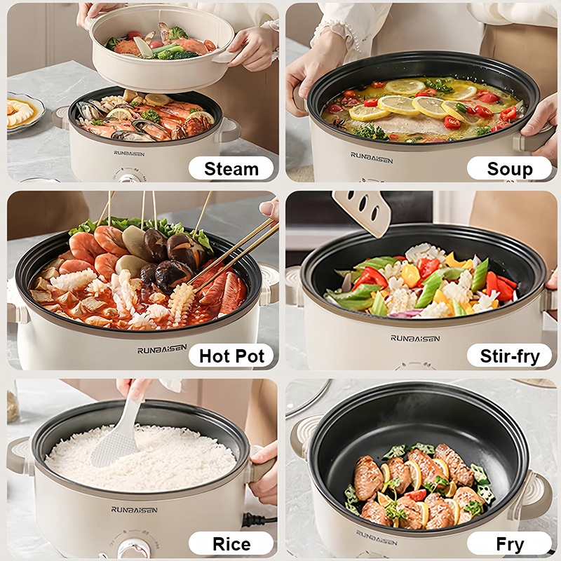 Large Capacity Multifunctional Electric Cooker 电煮锅 Non-Stick Multi Cooker with Steamer Upgraded Electric Hot Pot