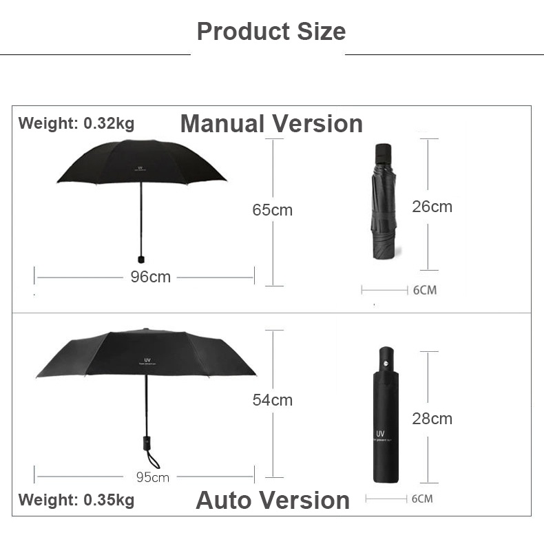 Large Size Auto Open Dual-Use 8 Bone UV Umbrella Sun Folding Sunscreen Rain Parasol Frame Windproof Manual Fiber School