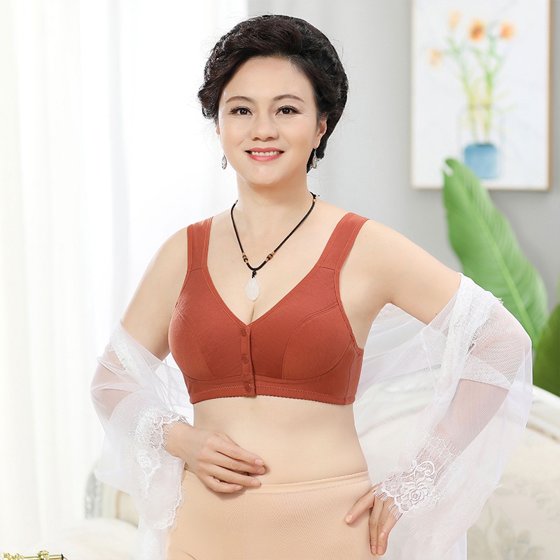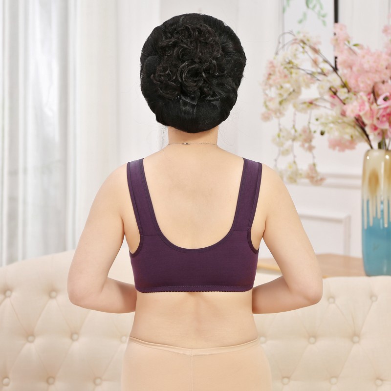 Large Size Unrimmed Front Button Underwear for Middle-aged and Elderly Ladies Soft Cotton Vest Type Bra
