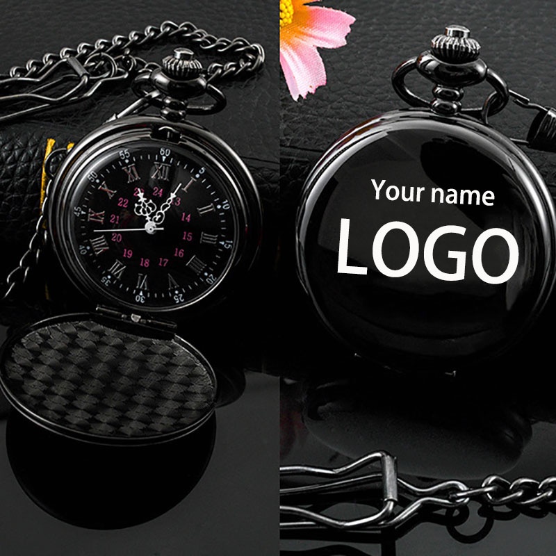 laser engraving Unisex Vintage Numerals Pocket Watch Roman Pattern Steampunk Quartz Analog Watch with Chain Great Gift for Father Husbands Mother Friends