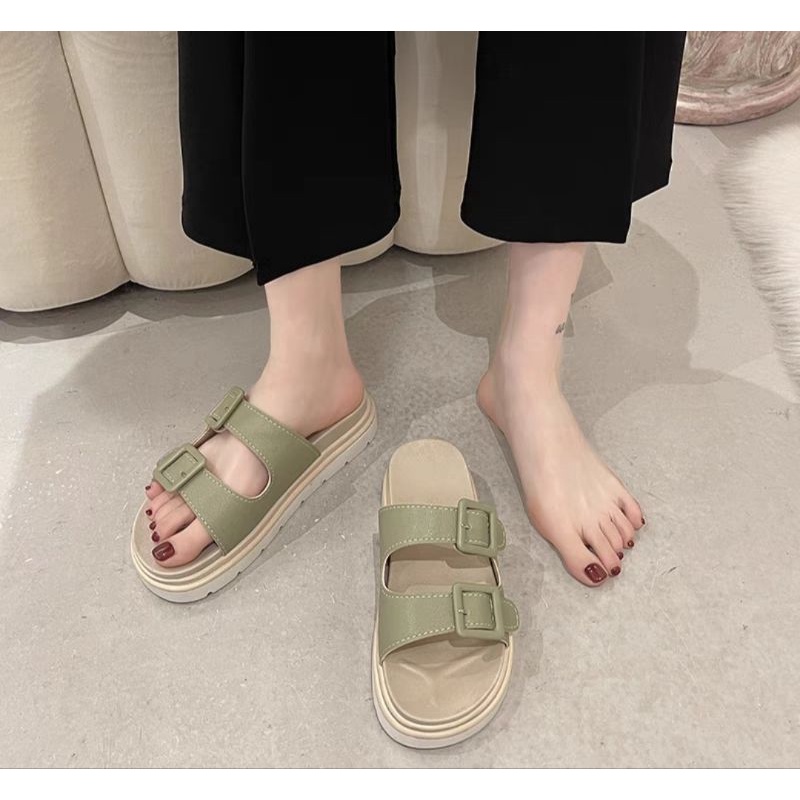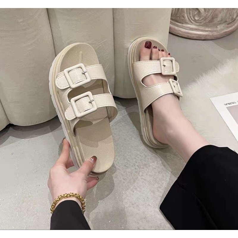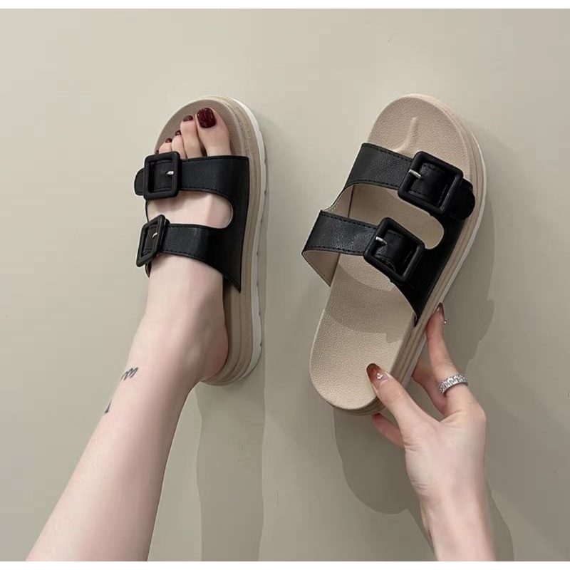 Latest Women's Platform Sandals with Flat Heels / Women's Casual Sandals with 2 Buckles / Korean Imported Women's Slop Sandals / Women's Sandals / Maudy Sandals /