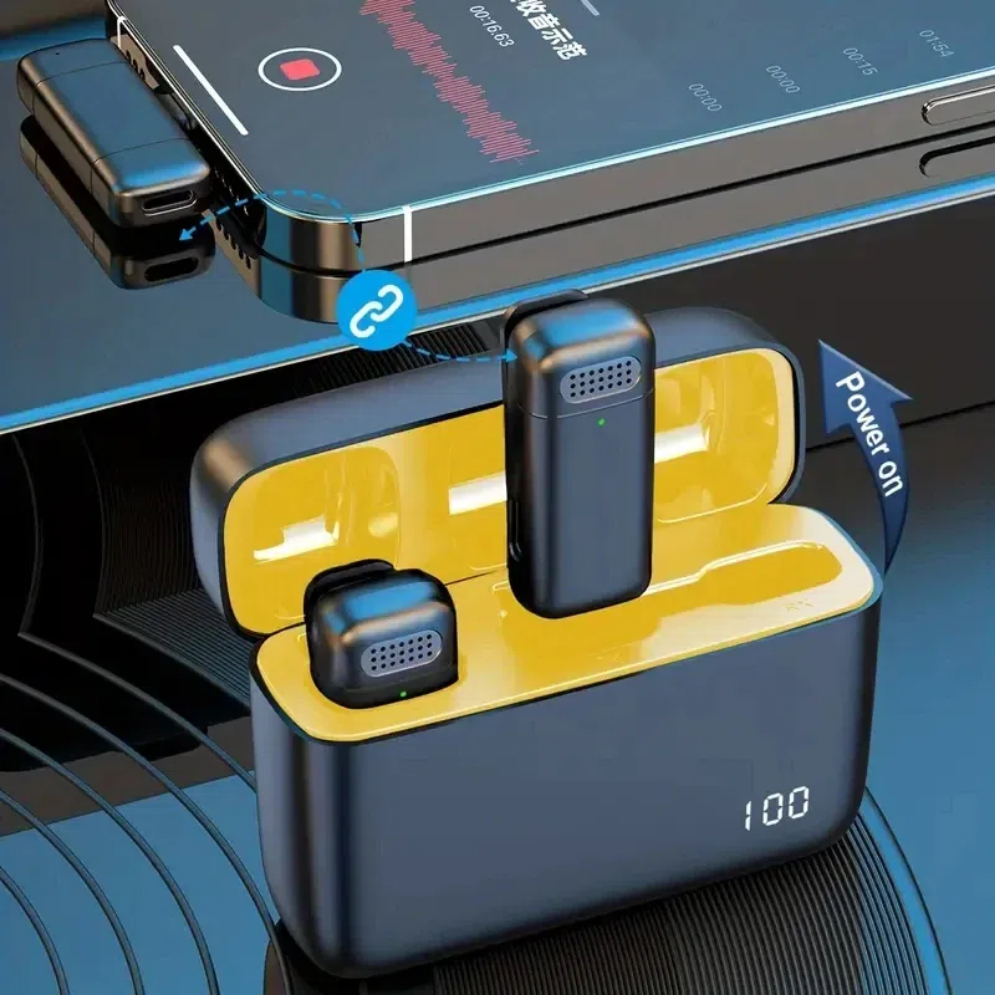 Lavalier Microphone Wireless Live Lavalier Mini Lapel Mic Dengan ANC Penghapusan Bising Aktif untuk Telefon IOS Android