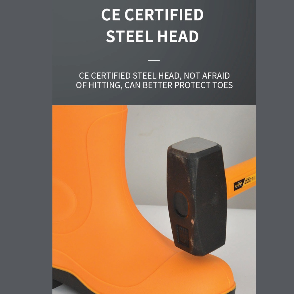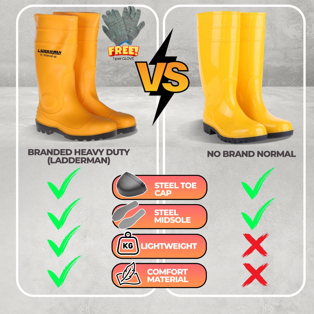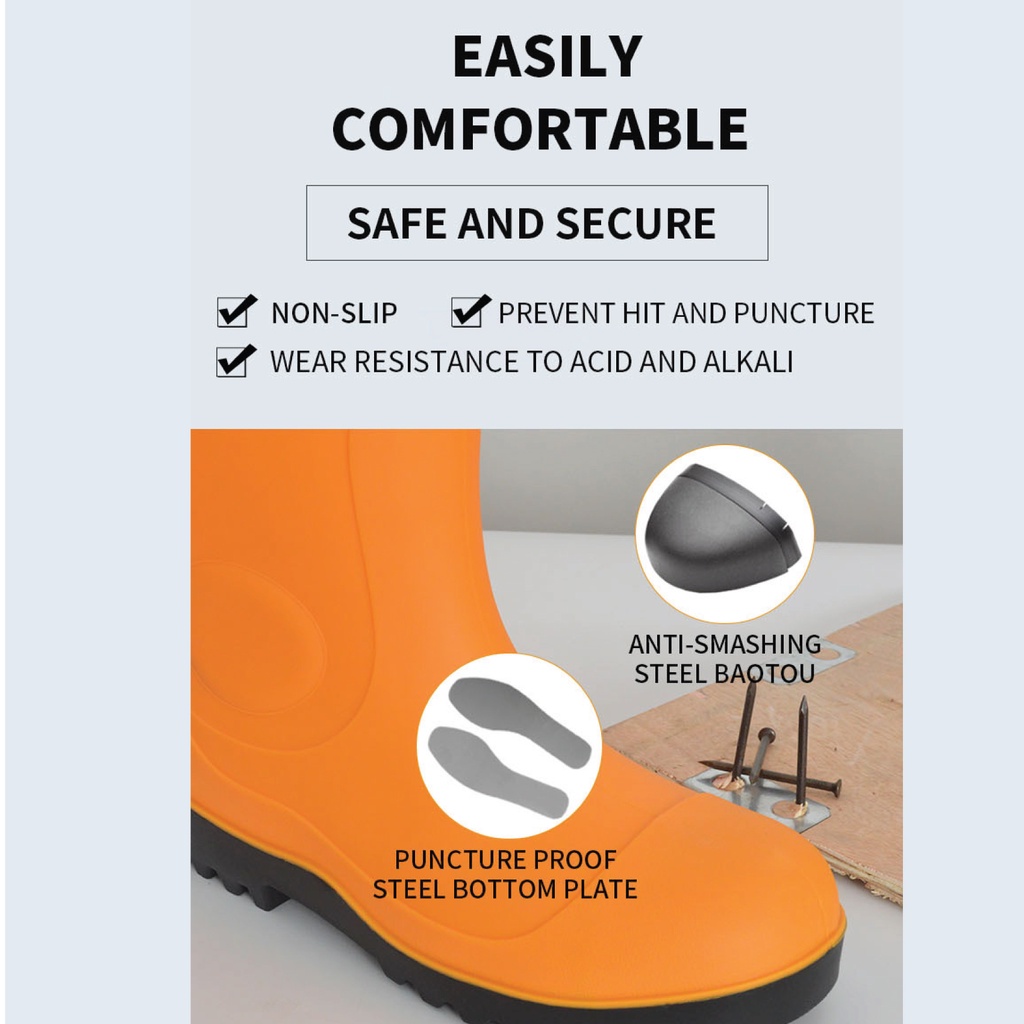 LDM Steel Toe Cap Safety Rubber Boot Yellow Orange Wellington Waterproof Construction Working PVC Shoes Kasut Site Getah