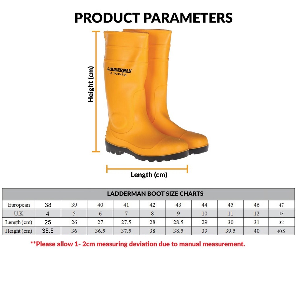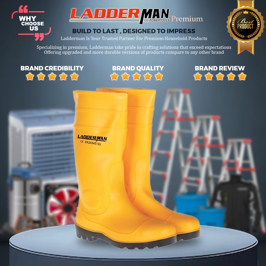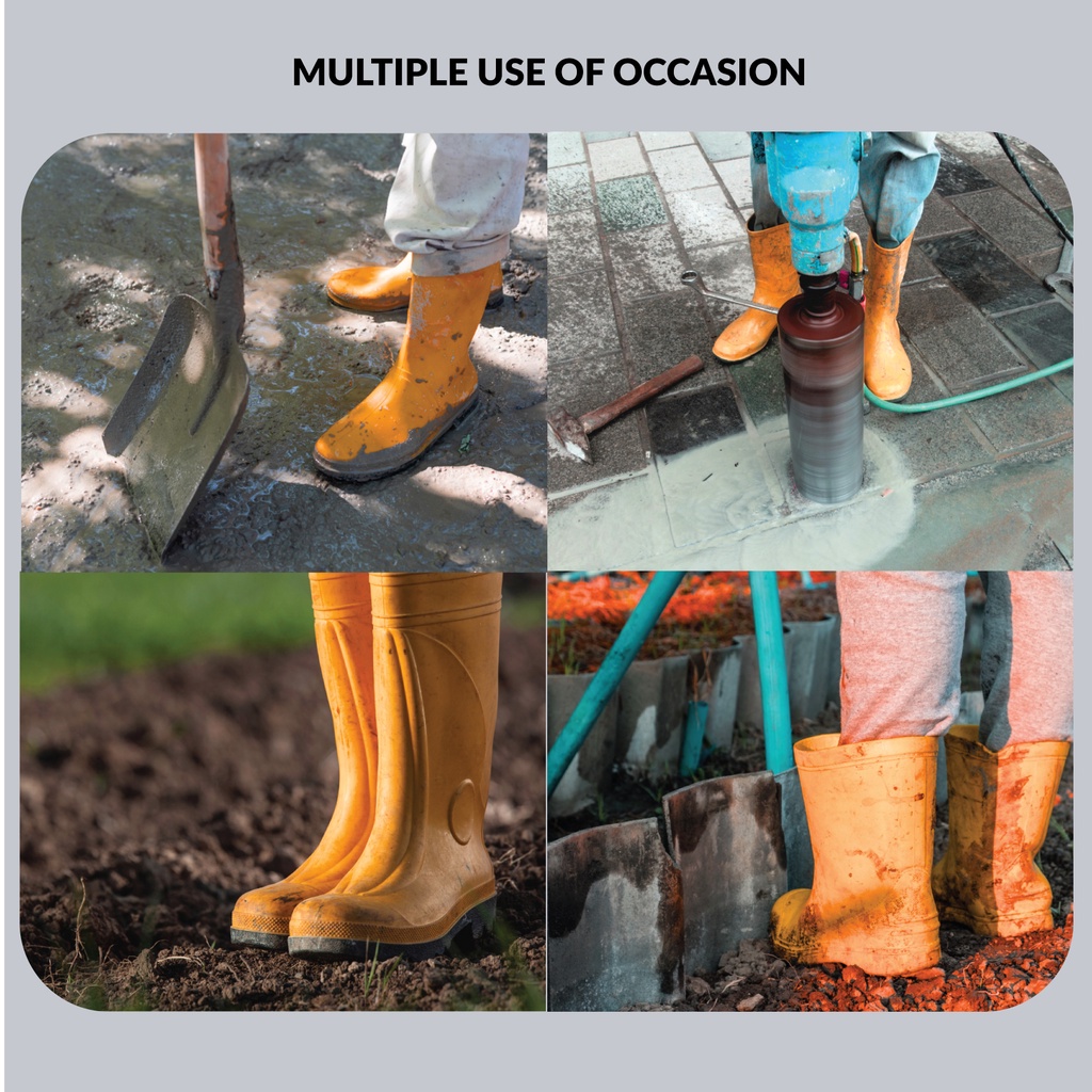 LDM Steel Toe Cap Safety Rubber Boot Yellow Orange Wellington Waterproof Construction Working PVC Shoes Kasut Site Getah