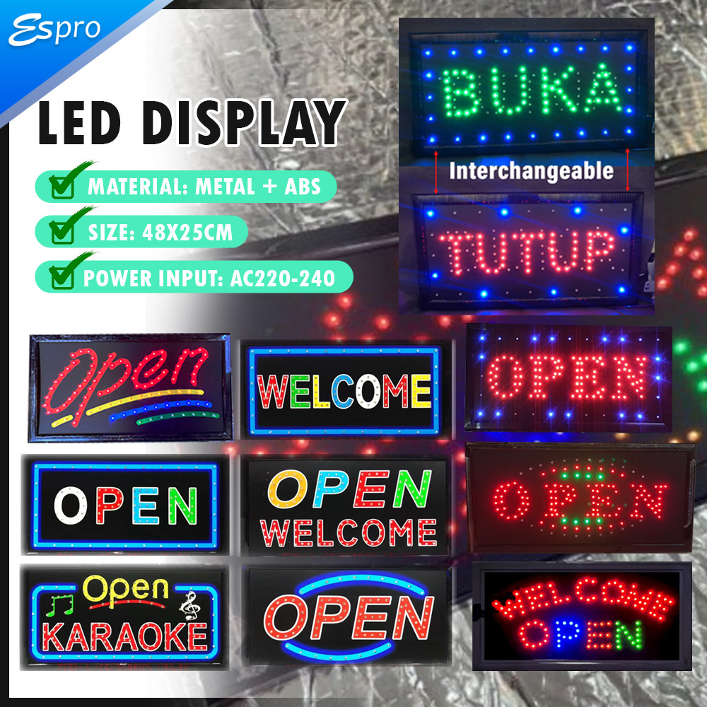 LED Signboard Display Light Day & Night 48x25CM Open SignBoard Buka Led Display Selamat Datang / Karaoke / Open + Close