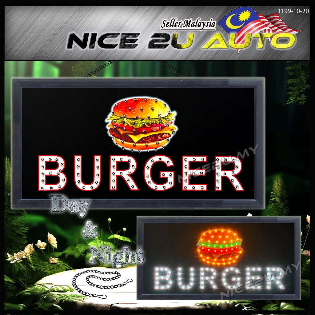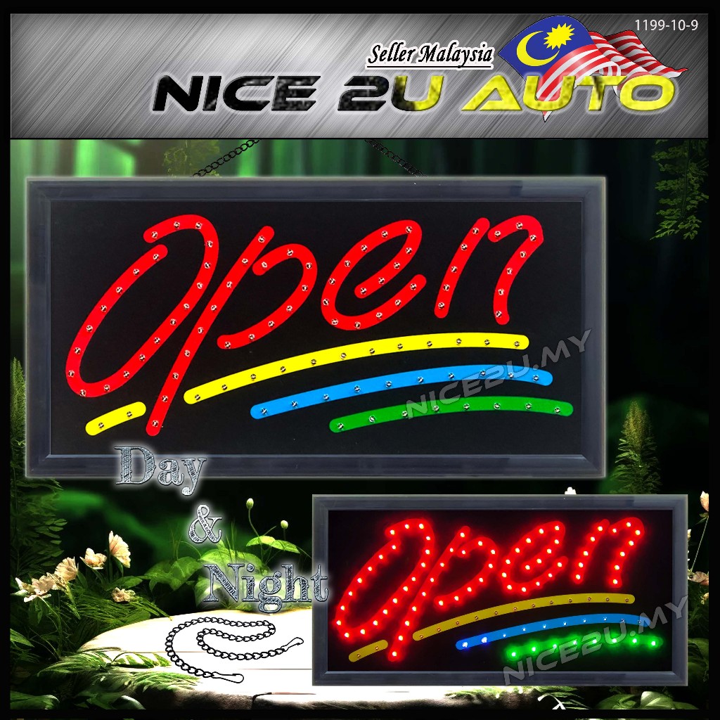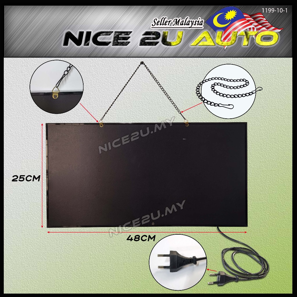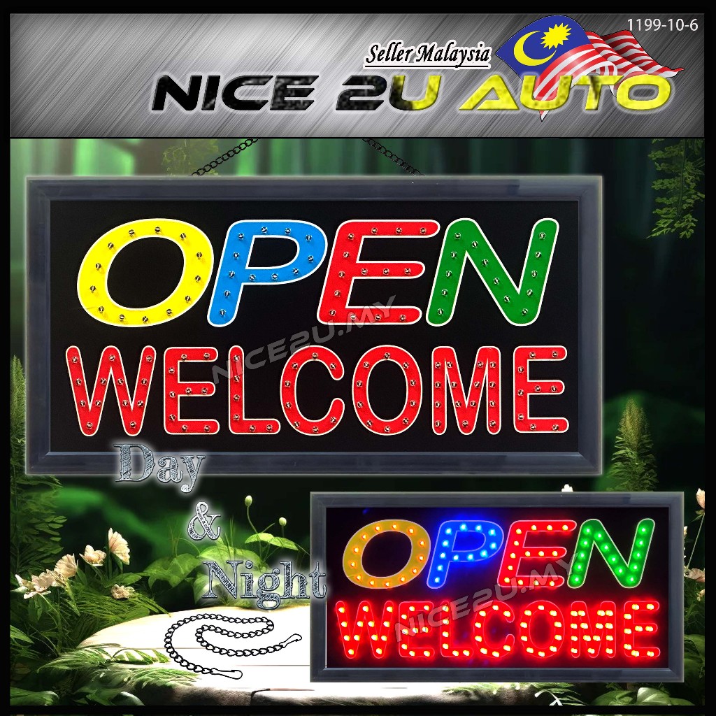 LED Signboard Display Light Day & Night 48x25CM With Metal Hang Chain Open Welcome Burger Roti