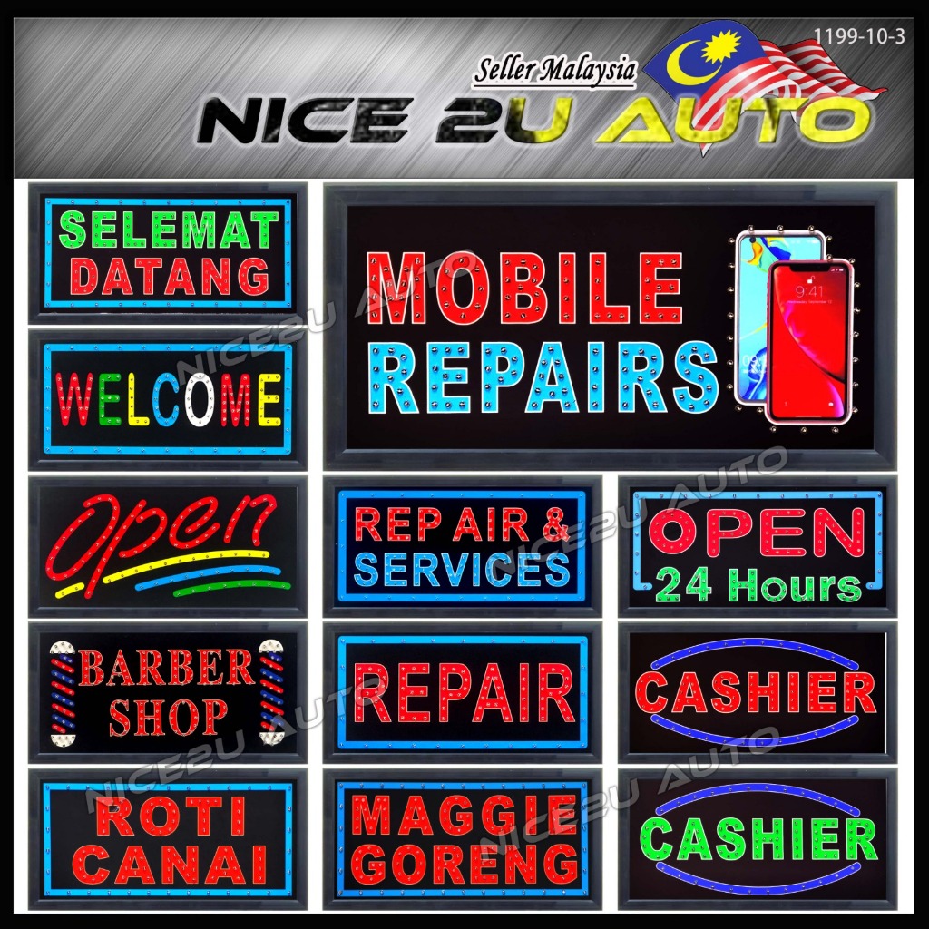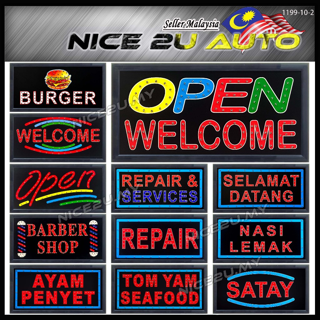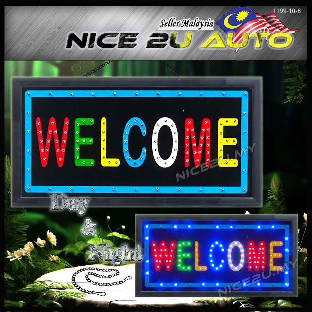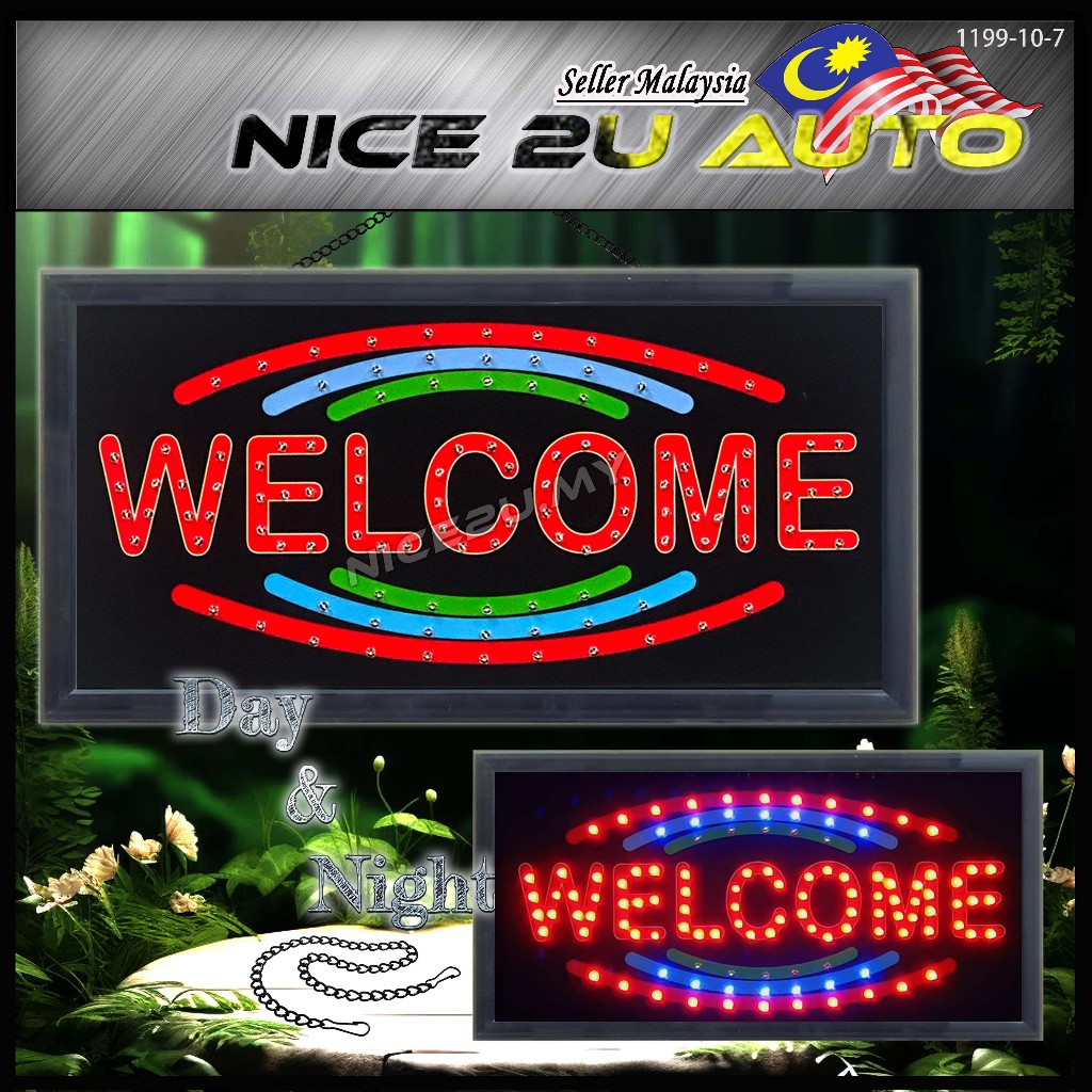 LED Signboard Display Light Day & Night 48x25CM With Metal Hang Chain Open Welcome Burger Roti