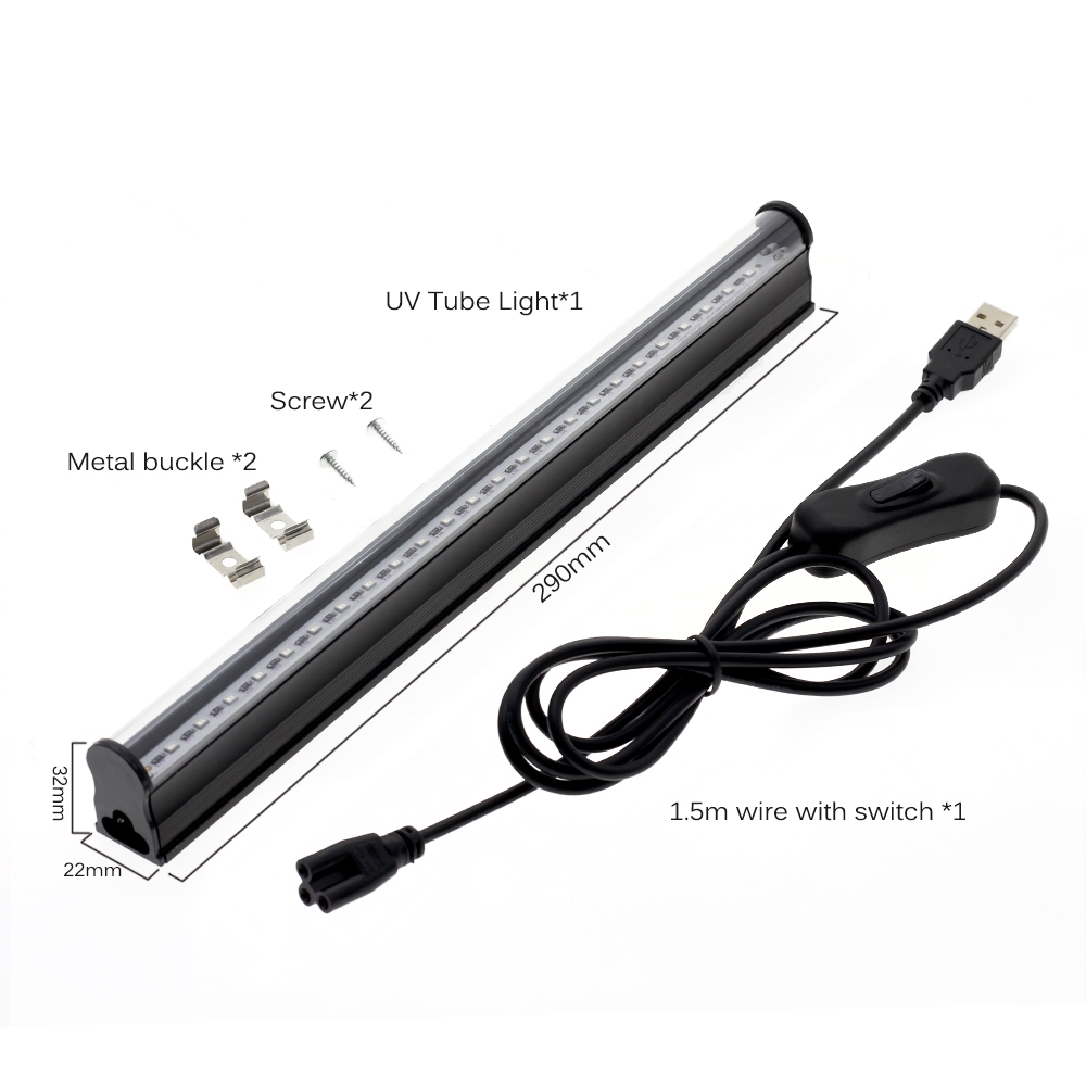 LED UV Ultraviolet Light 5V USB 395nm Lampu UV Fluorescent Black Light Tube USB Driven 1.5m Cable With Switch