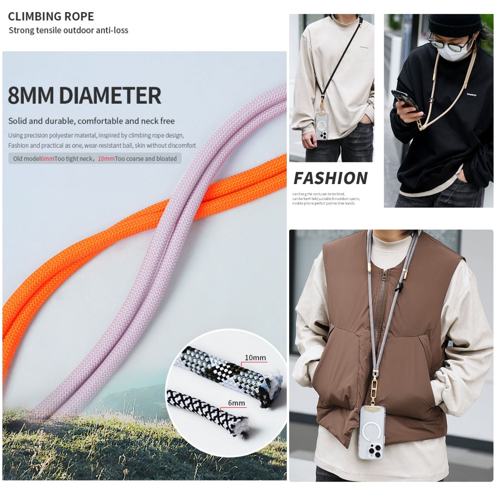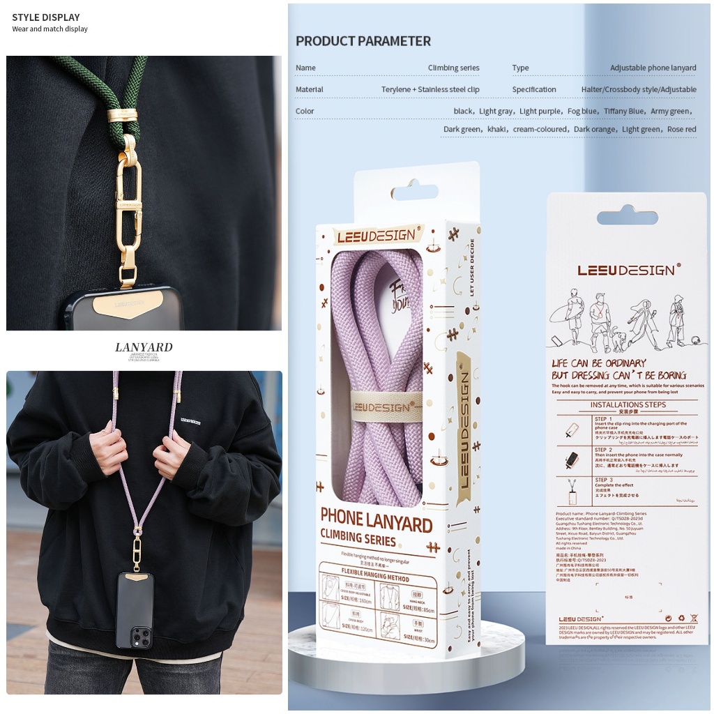 LEEU CLIMB LANYARD STRAP Set Tali Gantung Leher Sarung for Phone Case Adjustable Neck Crossbody Wrist Patch Clip Holder
