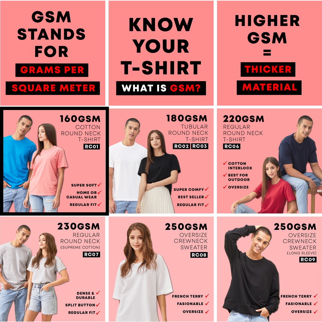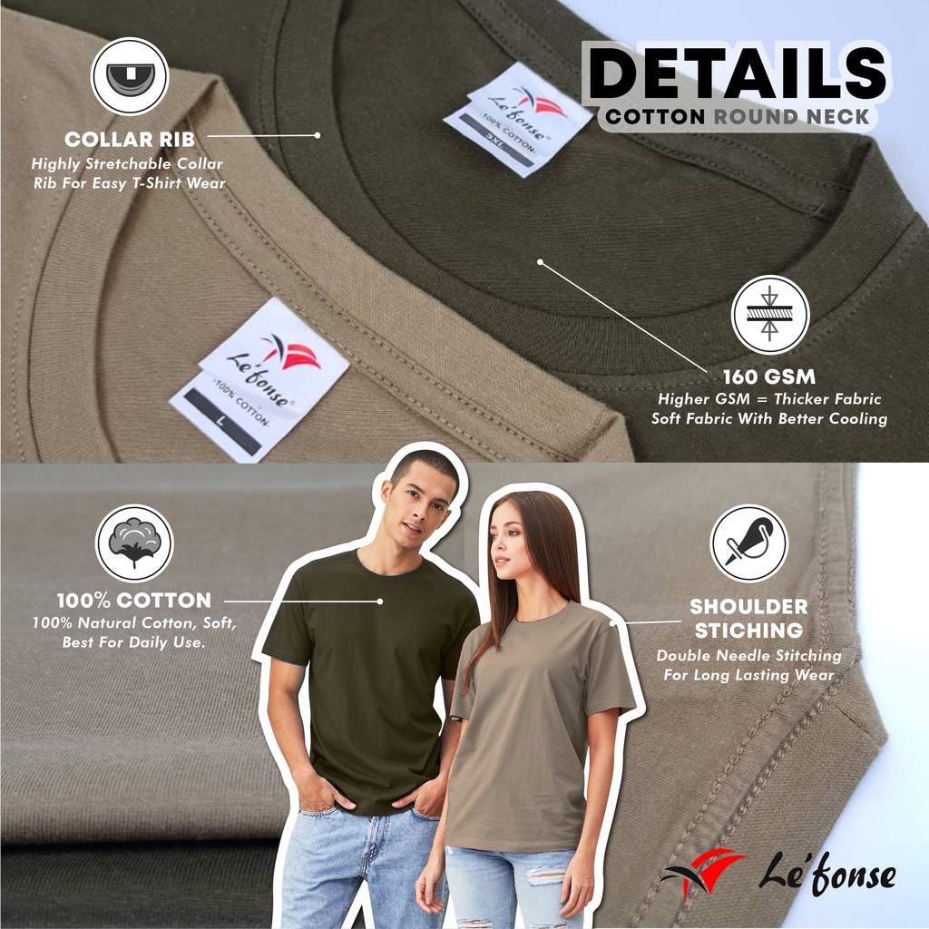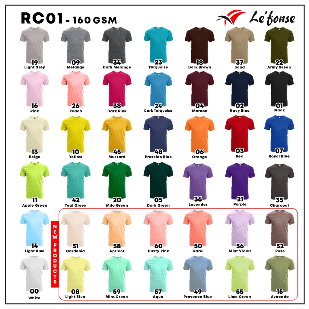 LEFONSE Cotton Round Neck Plain Tshirt 160gsm Unisex Baju T Shirt Lelaki - RC01 Group A