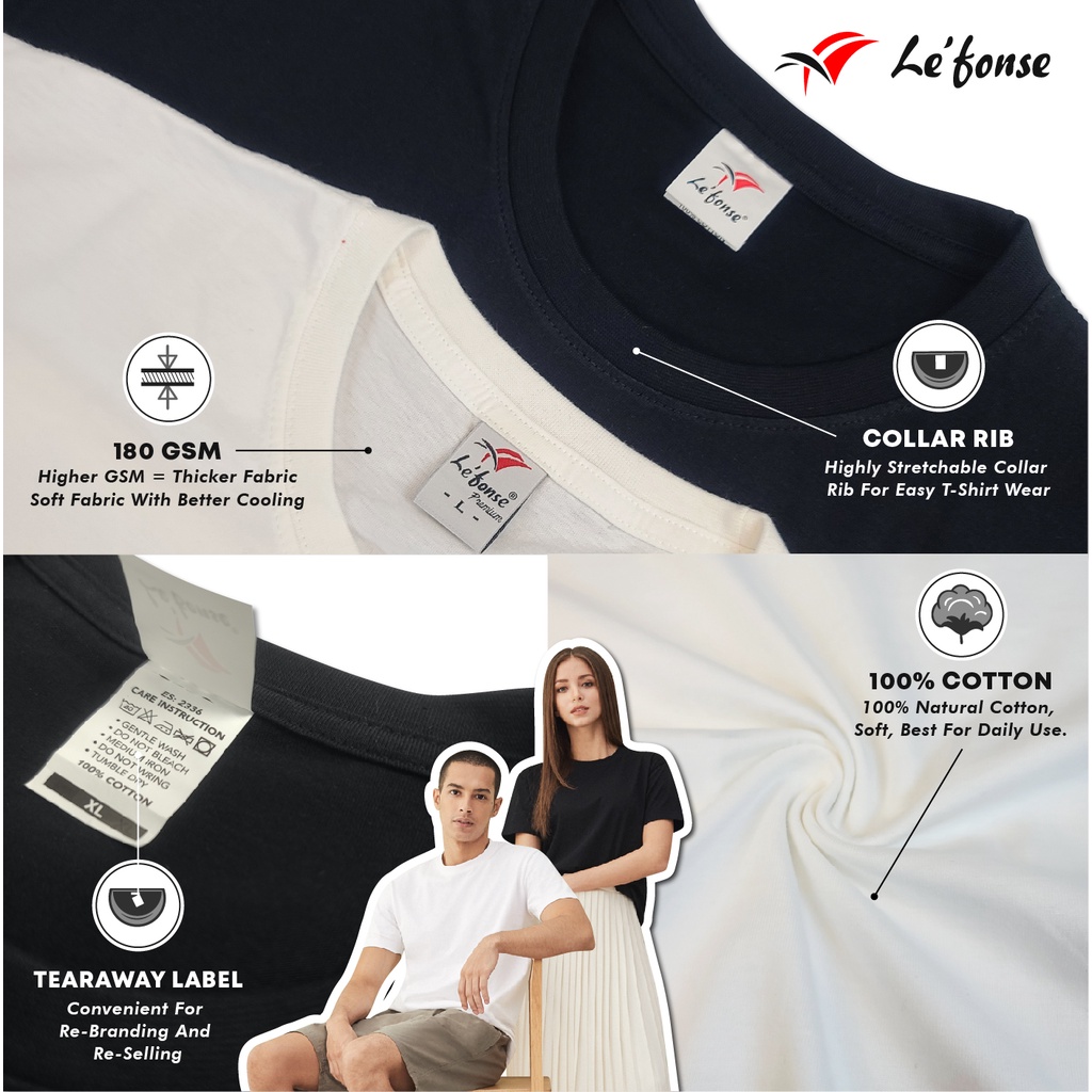 Lefonse Unisex [180gsm] Premium Cotton Plain Round Neck T-shirt - White RC02 / Black RC03