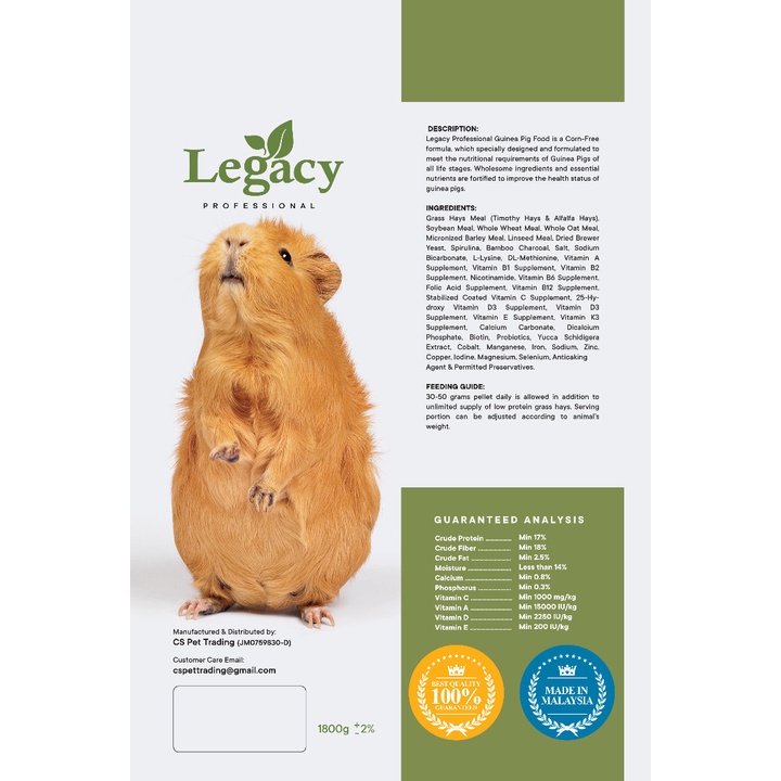 Legacy Professional Guinea Pig Food 天竺鼠饲料 (1.8kg or 2kg/bag)