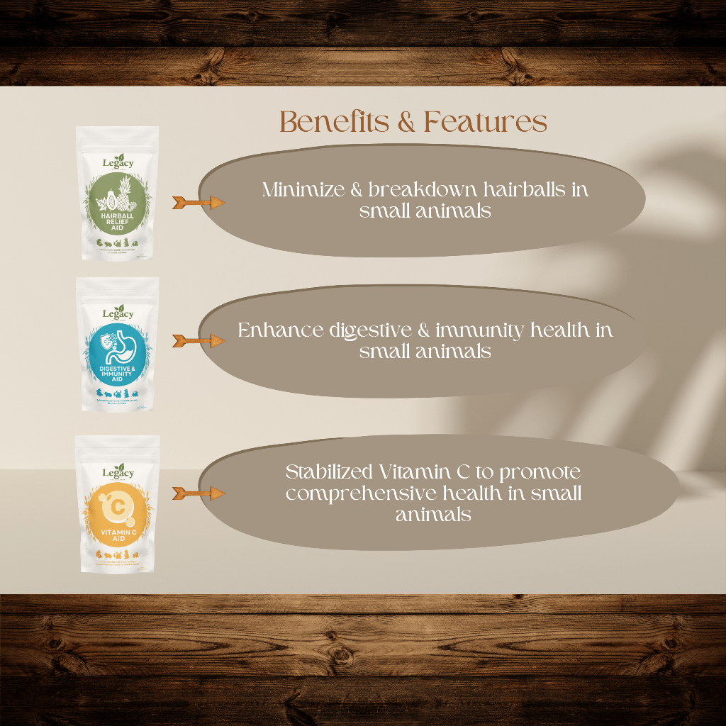 Legacy Supplement Series for small animals {Hairball Relief Aid / Digestive & Immunity Aid / Vitamin C Aid}