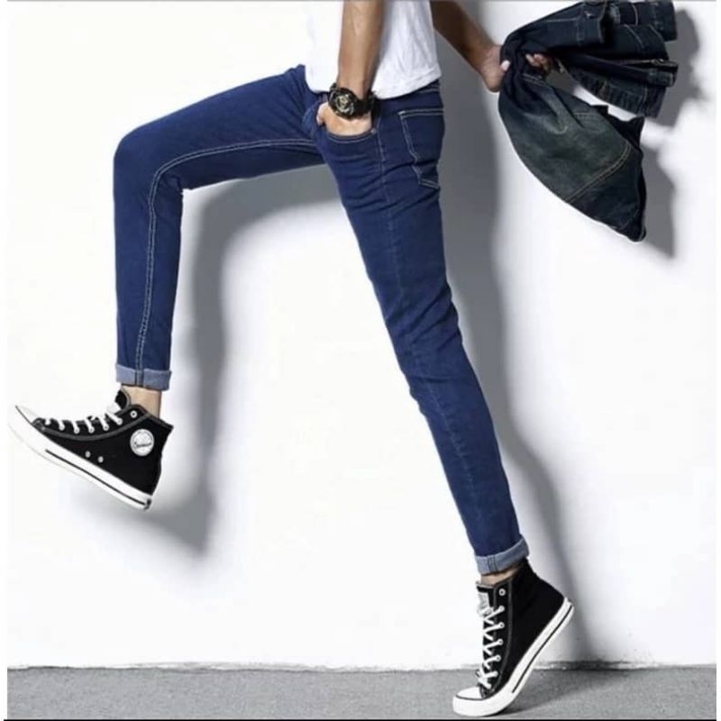 Lelaki Denim Super stretchable slim fit skinny jeans kain Tebal dan soft stretch material 95% cotton 5% spandex denim