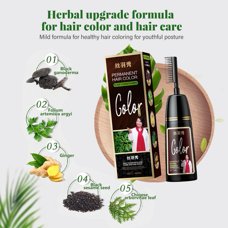 【LENA】 ❤️正品现货❤️‼️400ml‼️3 IN 1 Hair Coloring Comb Hair Dye Coloring Shampoo Hair Care Hair Conditioner一梳彩染发膏植物提取泡泡染发护发养发一梳黑盖白发染发梳一洗彩染发剂