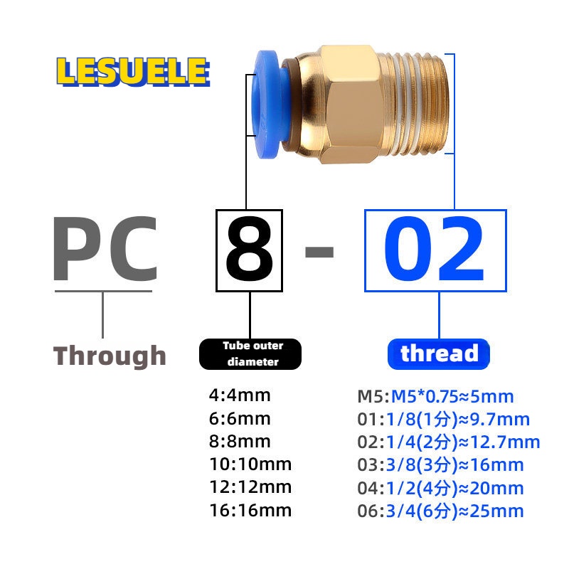 LESUPC8-02 Copper Male Thread Straight-through Quick Plug Connector PC10-03/12-04-01 Quick Plug Pneumatic Pipe Connector