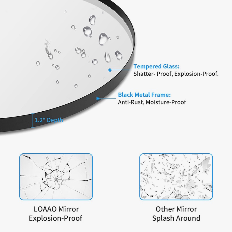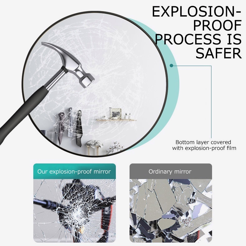 LI|Bathroom Mirror Explosion-proof Punch-free With Shelf Aluminum Alloy Frame Round Makeup Bedroom/Toilet Cermin 镜子