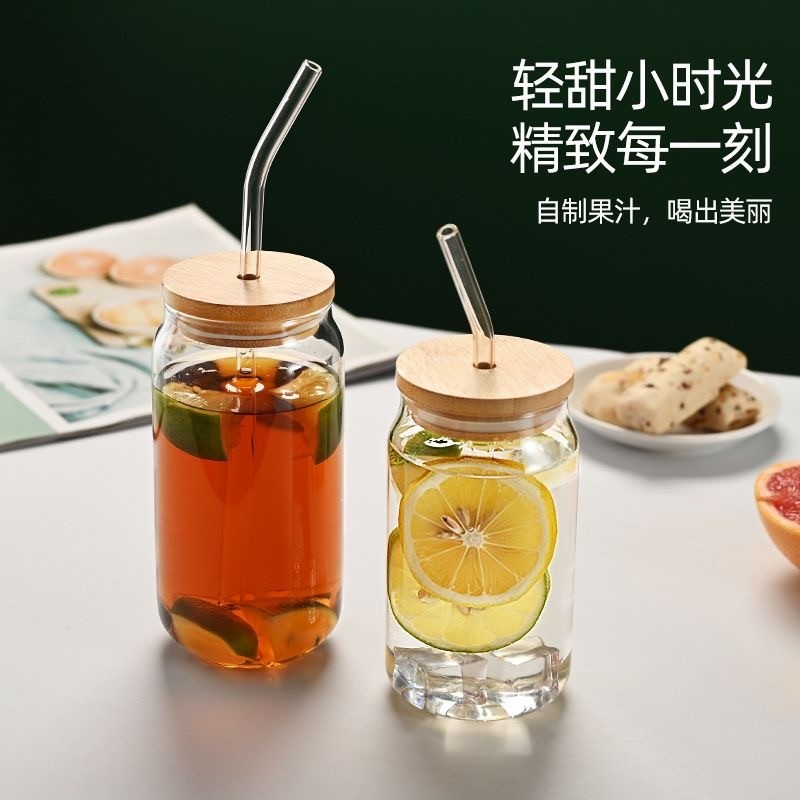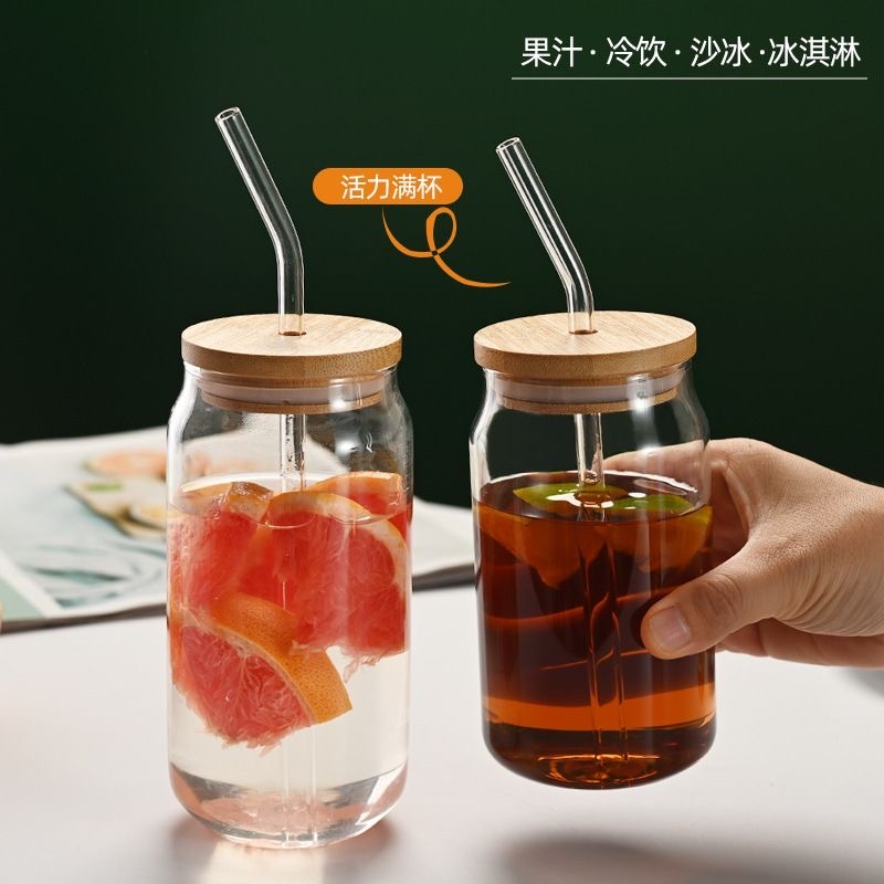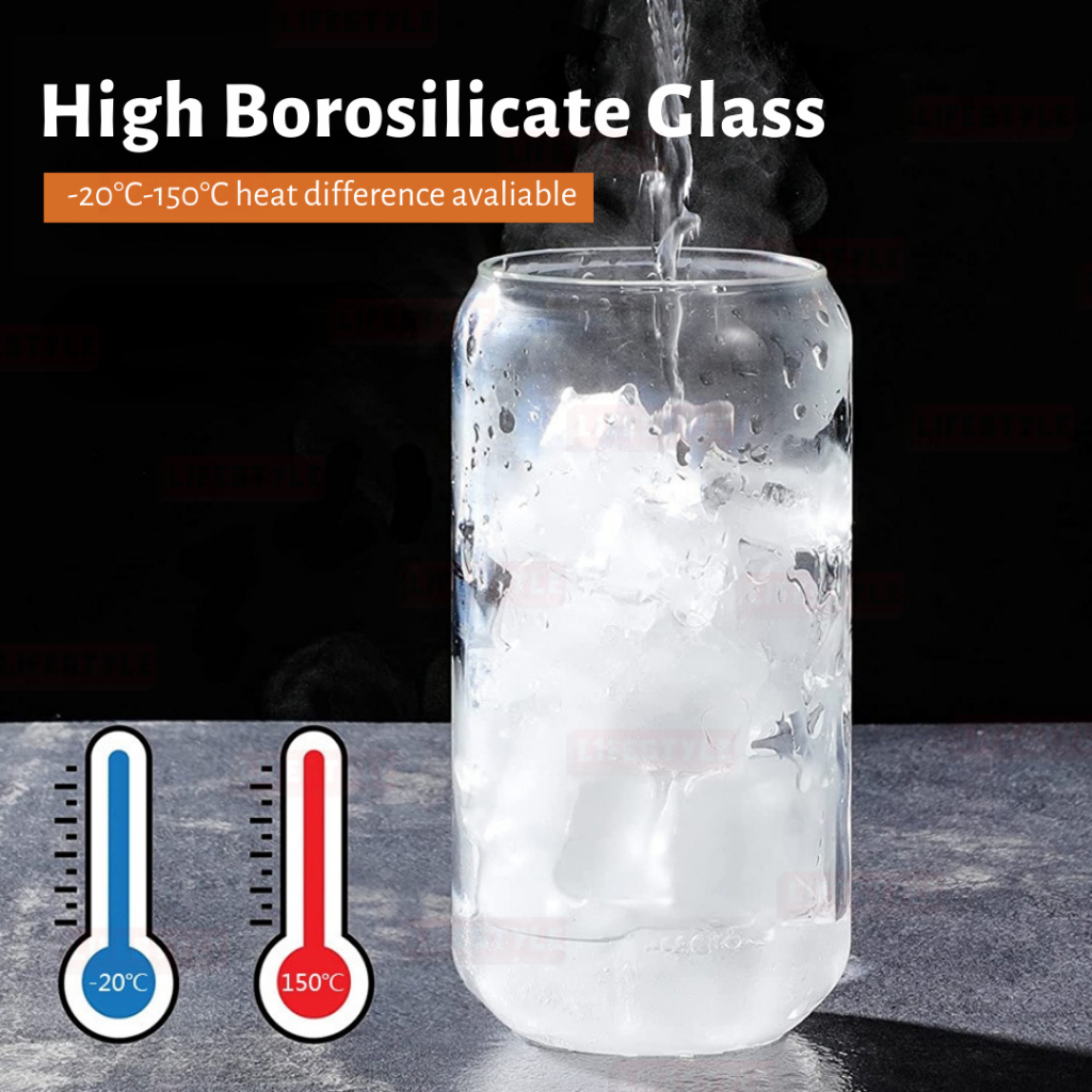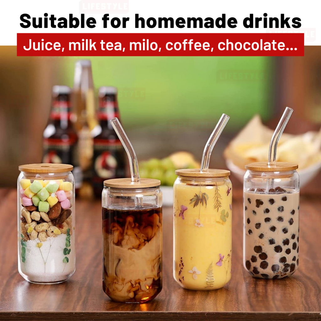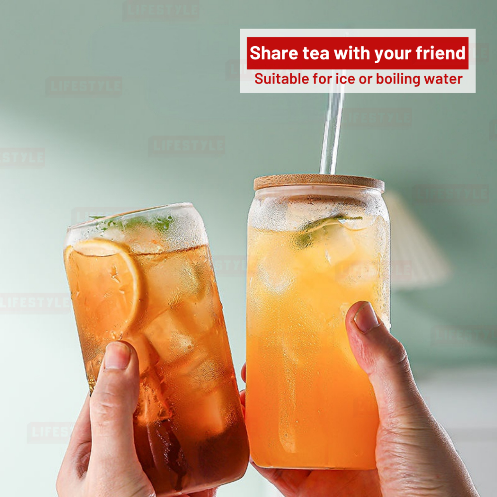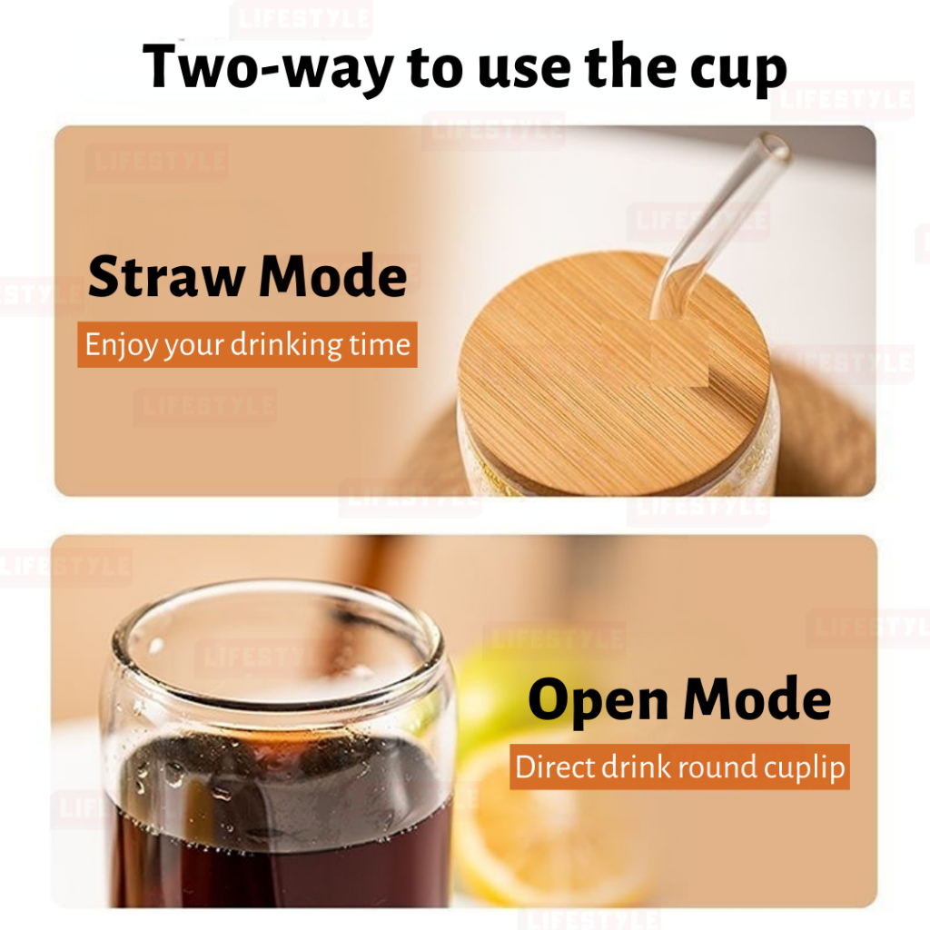 LIFESTYLE Cawan Kaca Cawan Air dengan Penyedut Minuman Penutup Diperbuat daripada Kaca Borosilikat Glass Cup