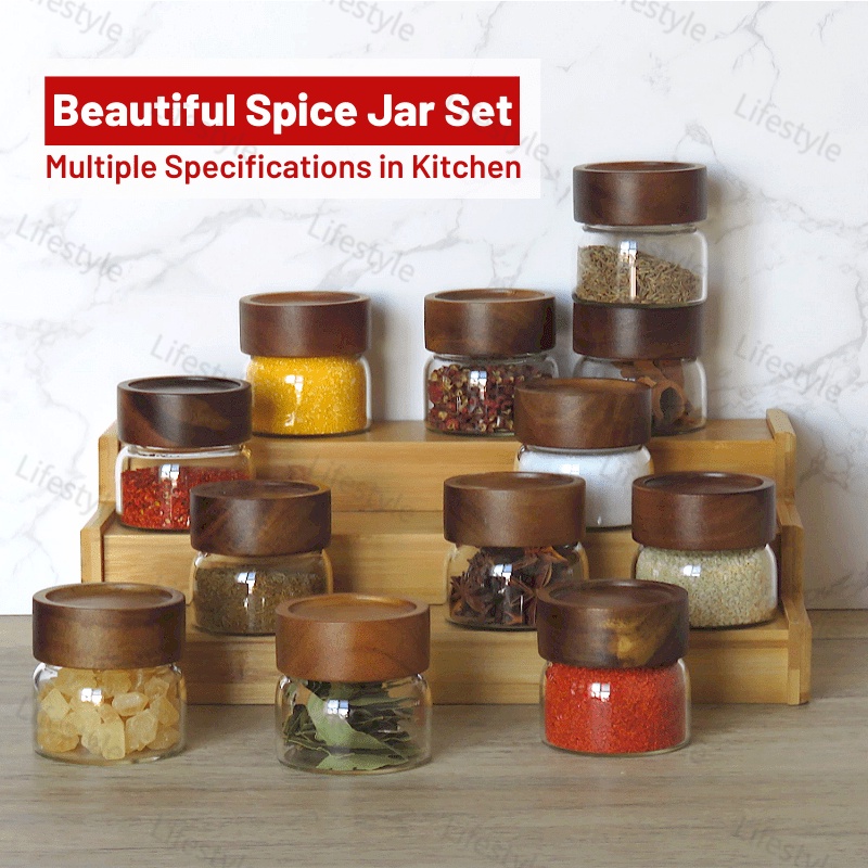 LIFESTYLE ?Screw Lid Glass Jar Set? Airtight Seasoning Bottle Spice Storage Container Spice Bottles Balang kaca
