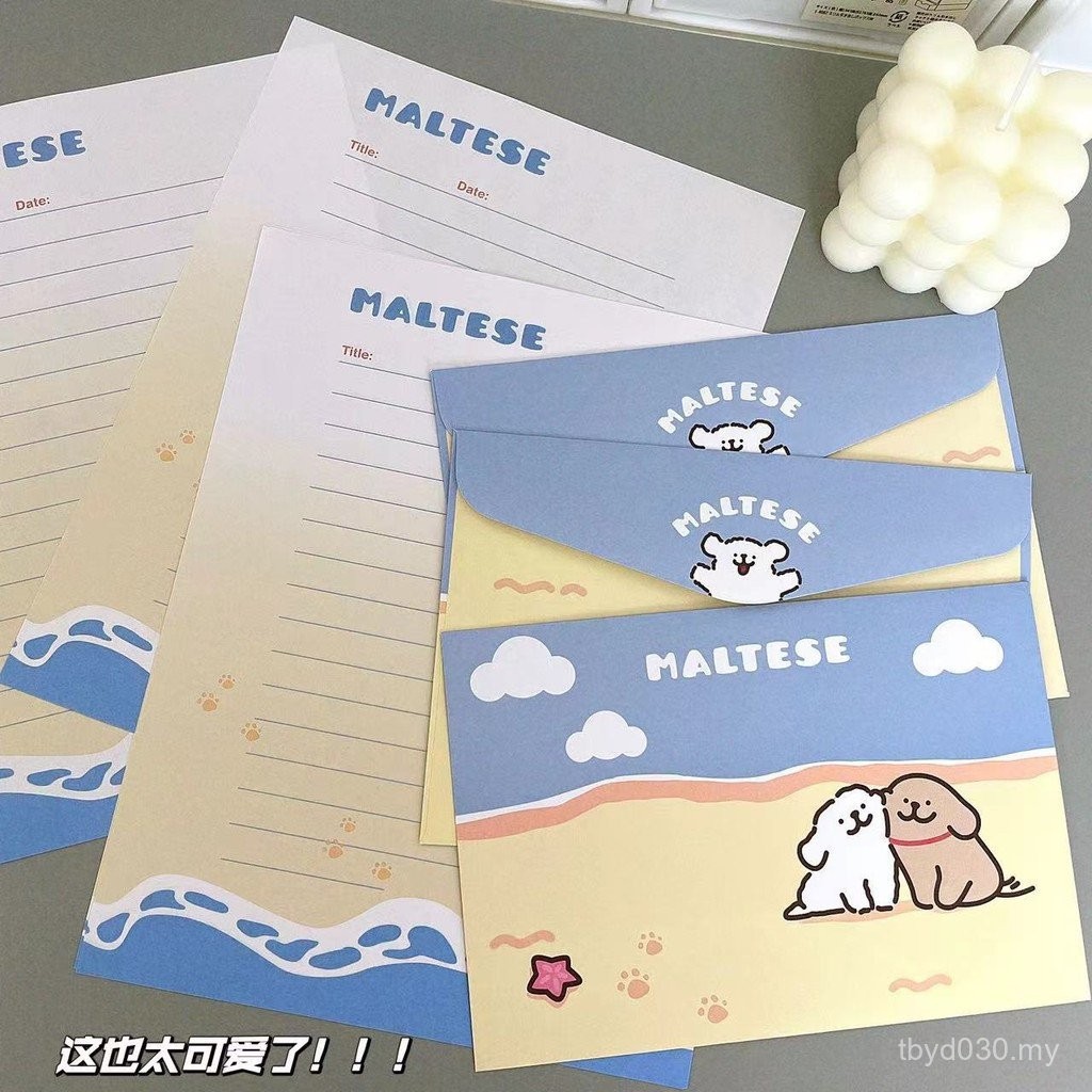 Line Art Puppy Envelope Letter Paper Ceremony Sense High Aesthetic Value Complete Set Handwritten Romantic Creative Blessing Gift Line Puppy Envelope Letter Paper Ceremonial Feel S