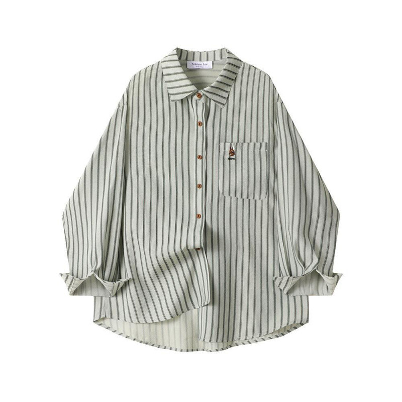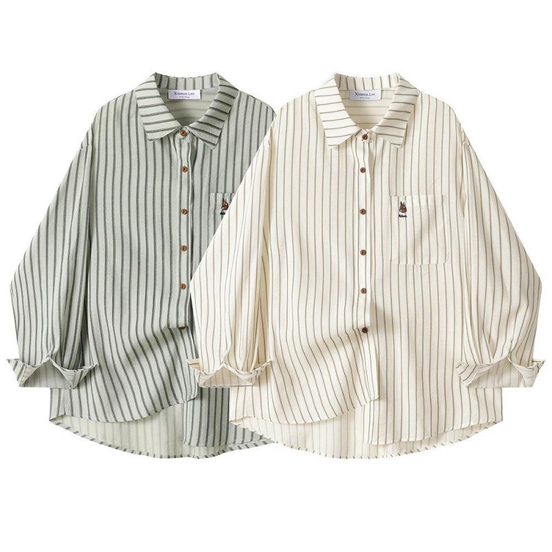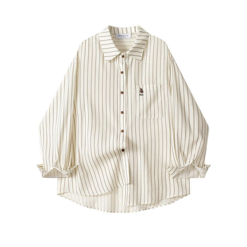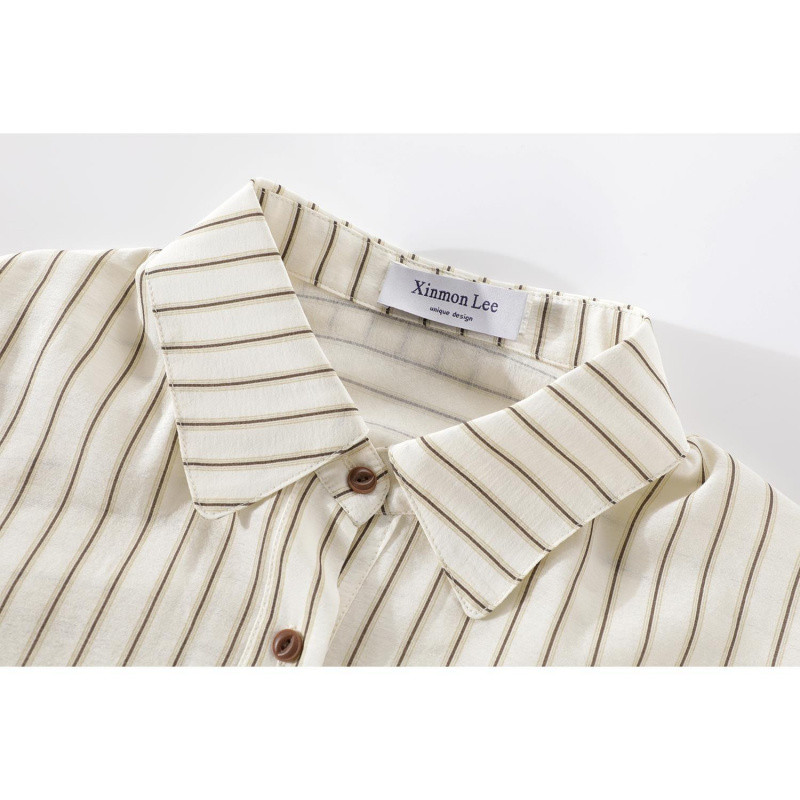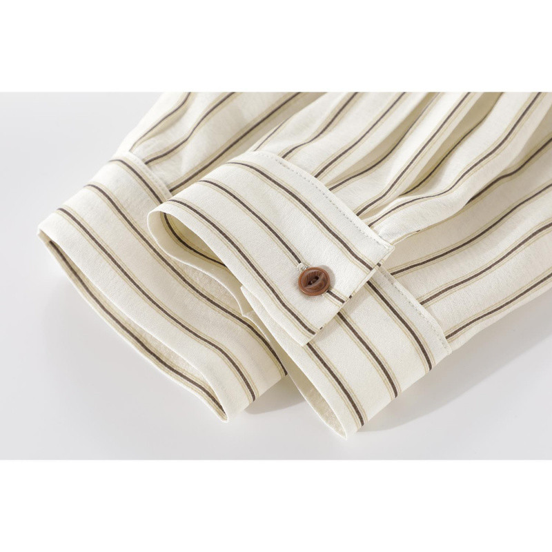 ?Linyufeng? Stripe Blouse Women Korean Style Long Sleeve Loose Classy Elegant Ironless Casual Ladies Flowy Shirt Top Baju ootd Kemeja Lengan Panjang Perempuan Wanita Terkini Murah Cantik