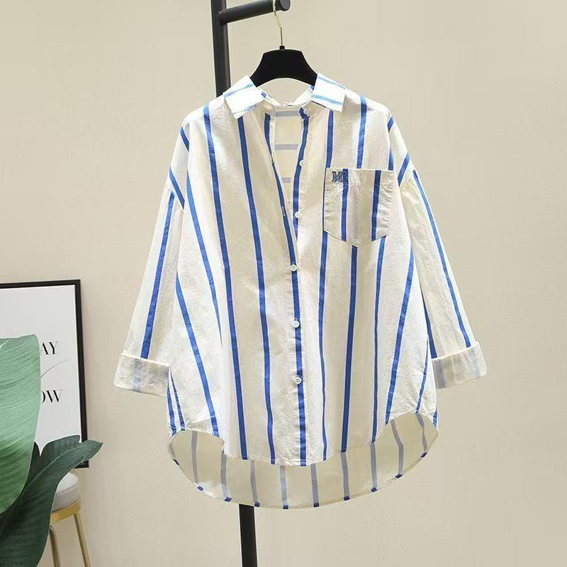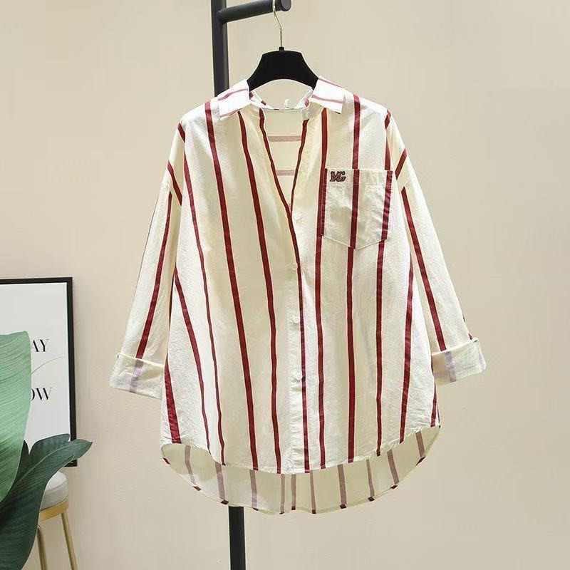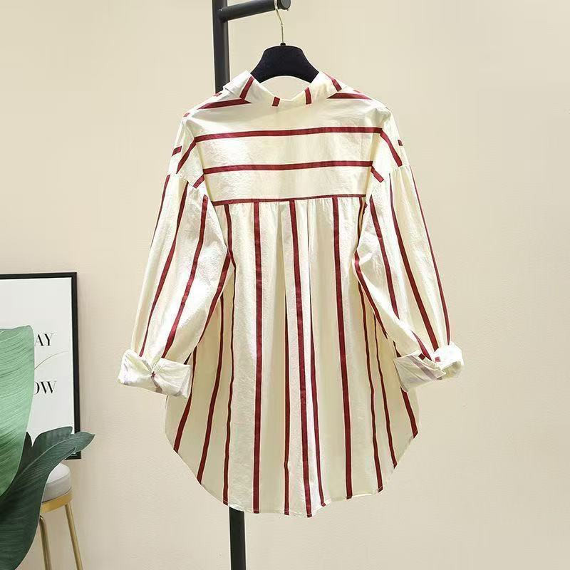 ?Linyufeng? Stripe Blouse Women Korean Style Long Sleeve Loose Classy Elegant Ironless Casual Ladies Shirt Top Baju ootd Kemeja Lengan Panjang Perempuan Wanita Terkini Murah Cantik