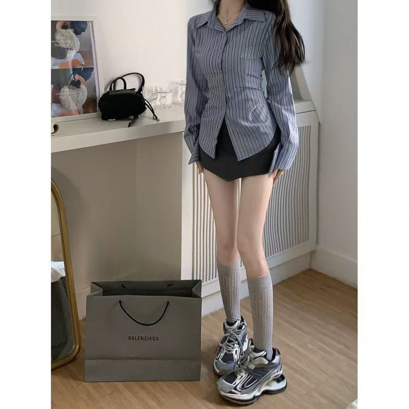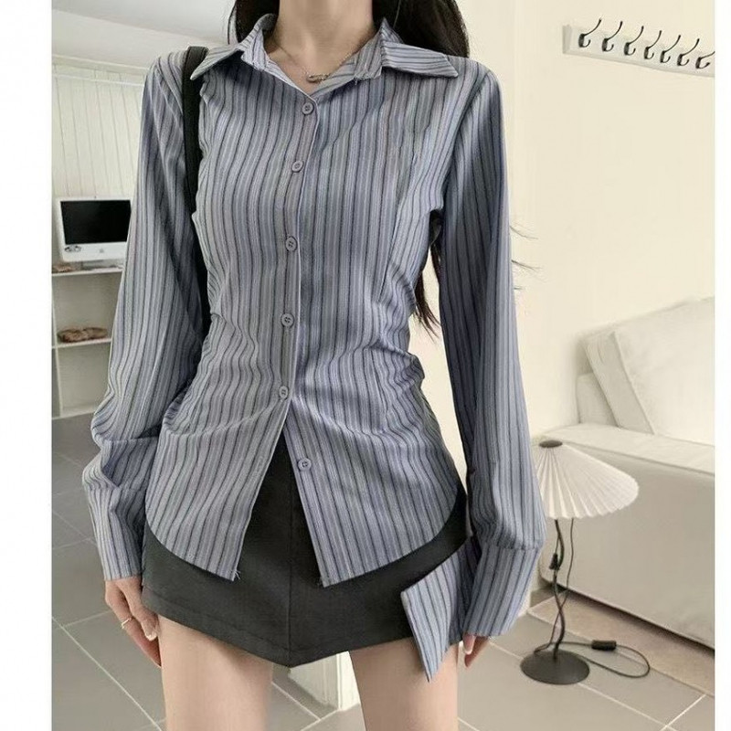 ?Linyufeng? Stripe Blouse Women Korean Style Loose Fit with Slim Waist Long Sleeves Elegant Classy Ironless Collar Top Baju ootd Kemeja Lengan Panjang Belang Perempuan Wanita Terkini Murah Cantik