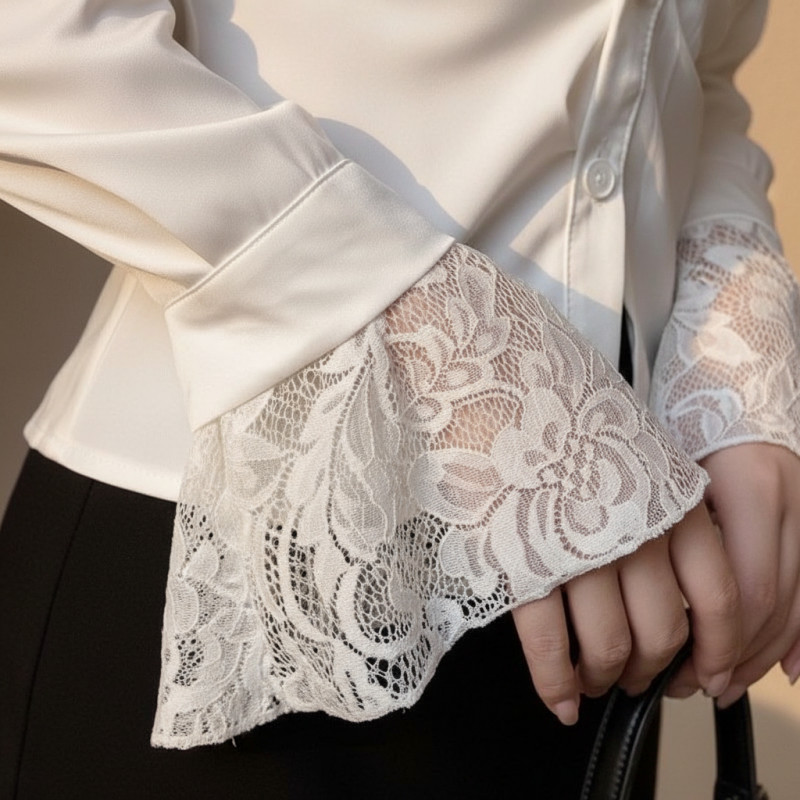?Linyufeng? White Blouse Women Lace Cuffs Slim Waist Collar Korean Style Long Sleeve Loose Casual Fashion Classy Elegant Fitted Ironless Ladies Shirt Top Baju ootd Kemeja Lengan Panjang Perempuan Wani