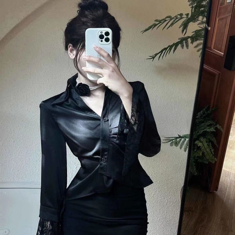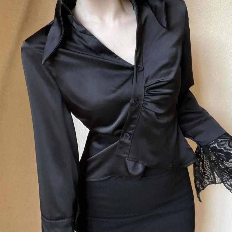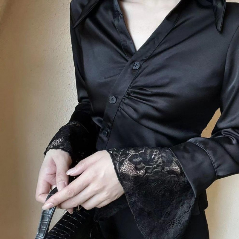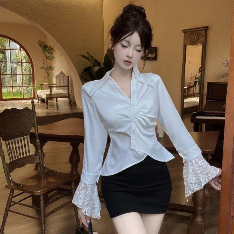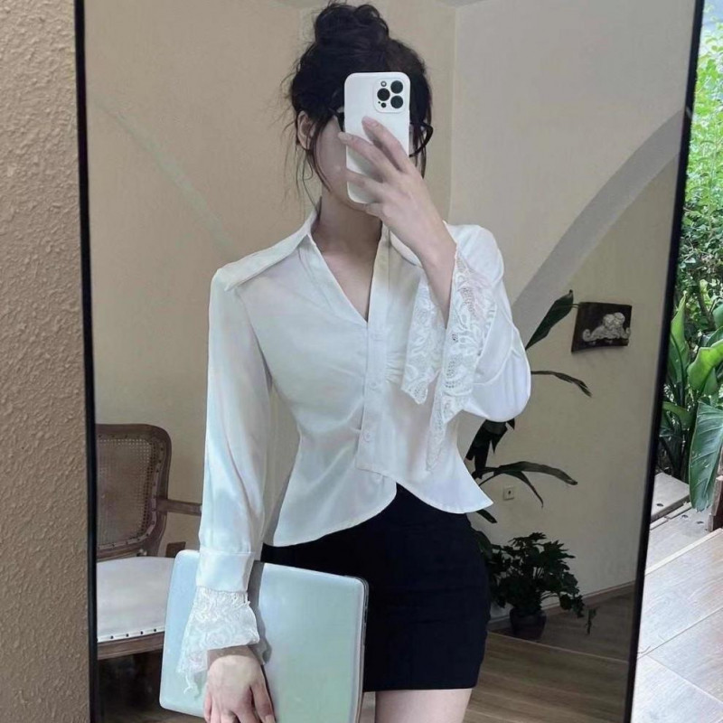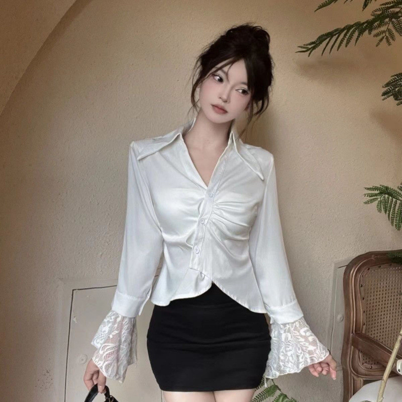 ?Linyufeng? White Blouse Women Lace Cuffs Slim Waist Collar Korean Style Long Sleeve Loose Casual Fashion Classy Elegant Fitted Ironless Ladies Shirt Top Baju ootd Kemeja Lengan Panjang Perempuan Wanita Terkini Murah Cantik