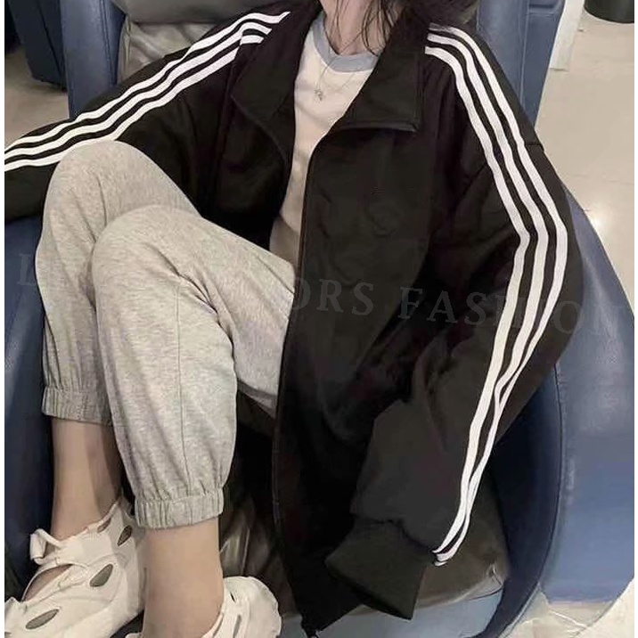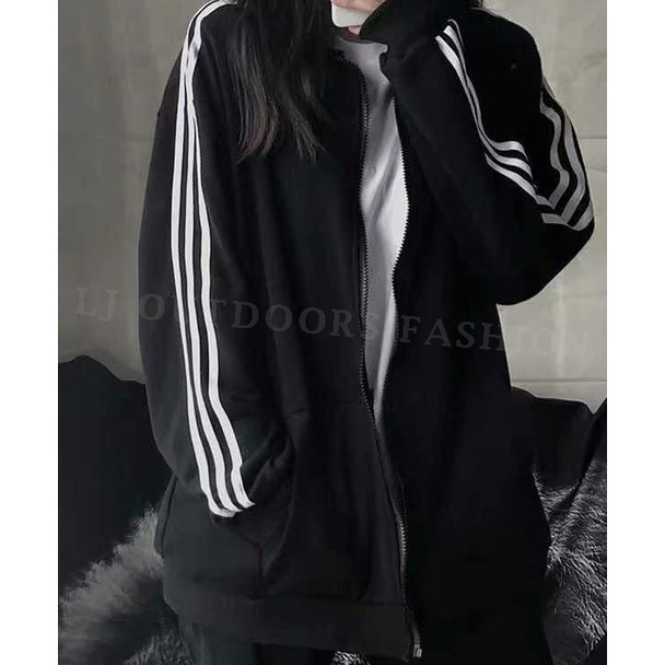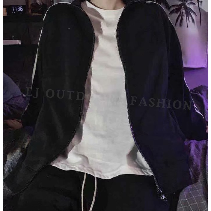 LJ- Jaket Wanita Fesyen Jaket Motor Zip Sukan Unisex Tiga Garis Sweater Perempuan Jacket Three Strip