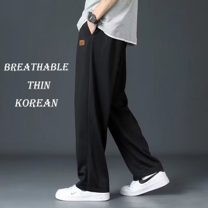 Local 24 Ship Plus Size Korean Ice Silk Pants for Men Loose Straight Cut Seluar Lelaki seluar slack lelaki Cargo celana Baggy Sweatpants Black Khaki Grey