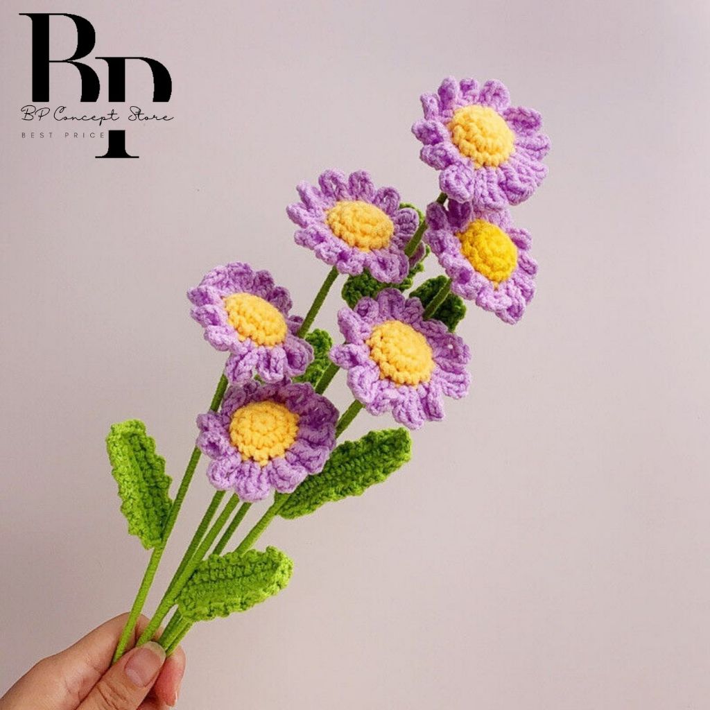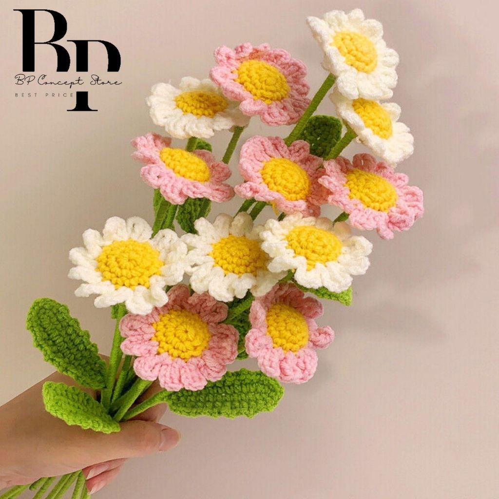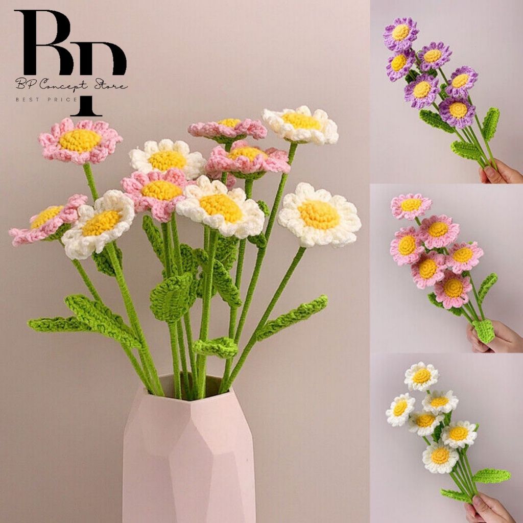 【Local Delivery】Hand-knitted Crochet Daisy Bouquet Finished Artificial Daisy Flowers Wedding Decoration Home Decoration