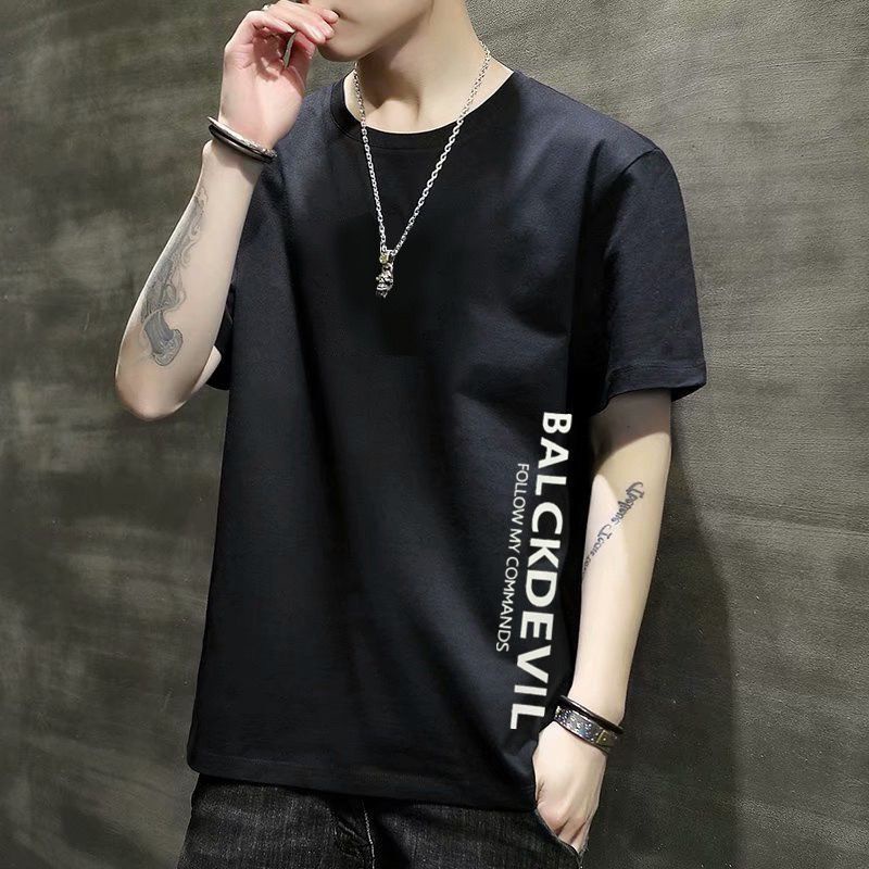 【Local delivery】夏季男生短袖T恤新款潮流休闲印花宽松短袖夏季新款打底衫衣服 短袖男士t恤新款半袖男生上衣服印花韩版百搭潮流体恤男T-shirt