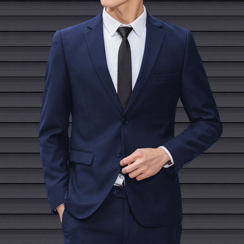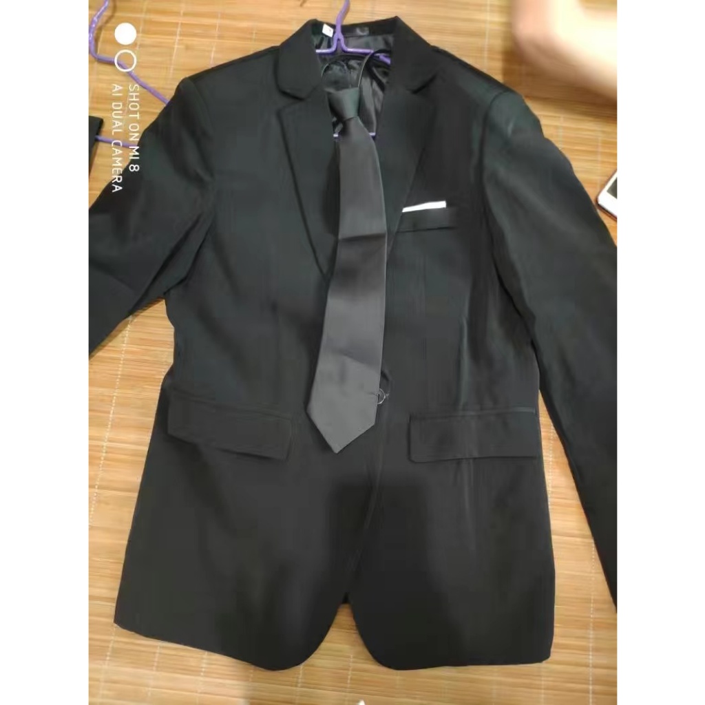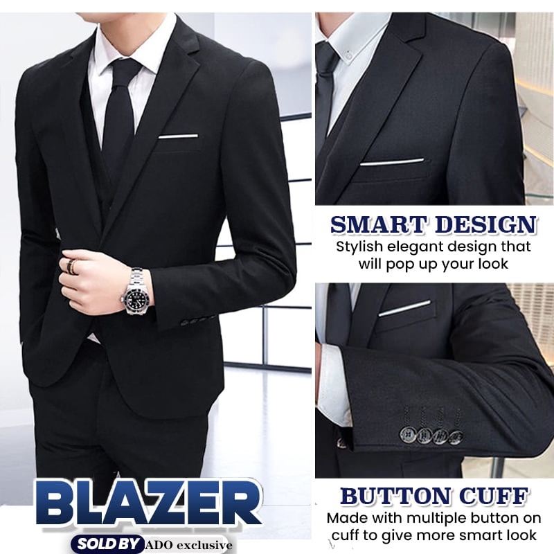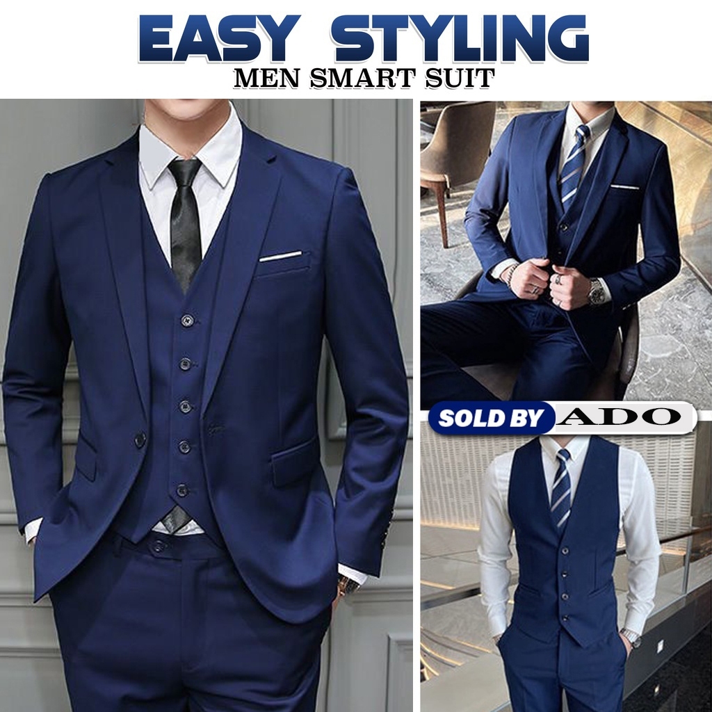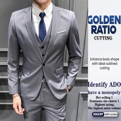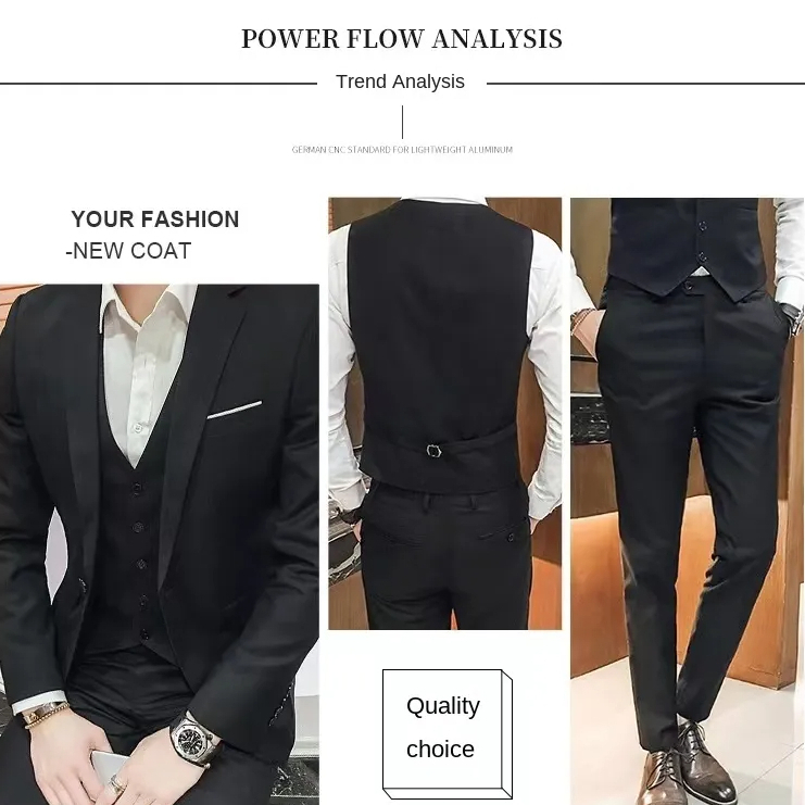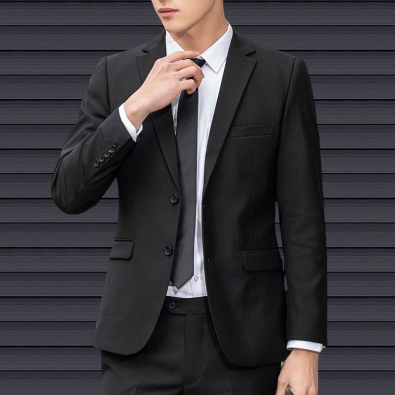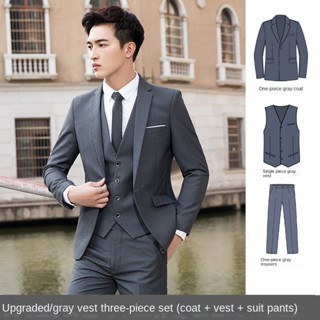 [Local Delivery] three-piece Set Two buttons Men Set Men Business Suit Formal Suits Slim Men Wedding Suit Dark gray suit Black jacket Dance party and dinner party